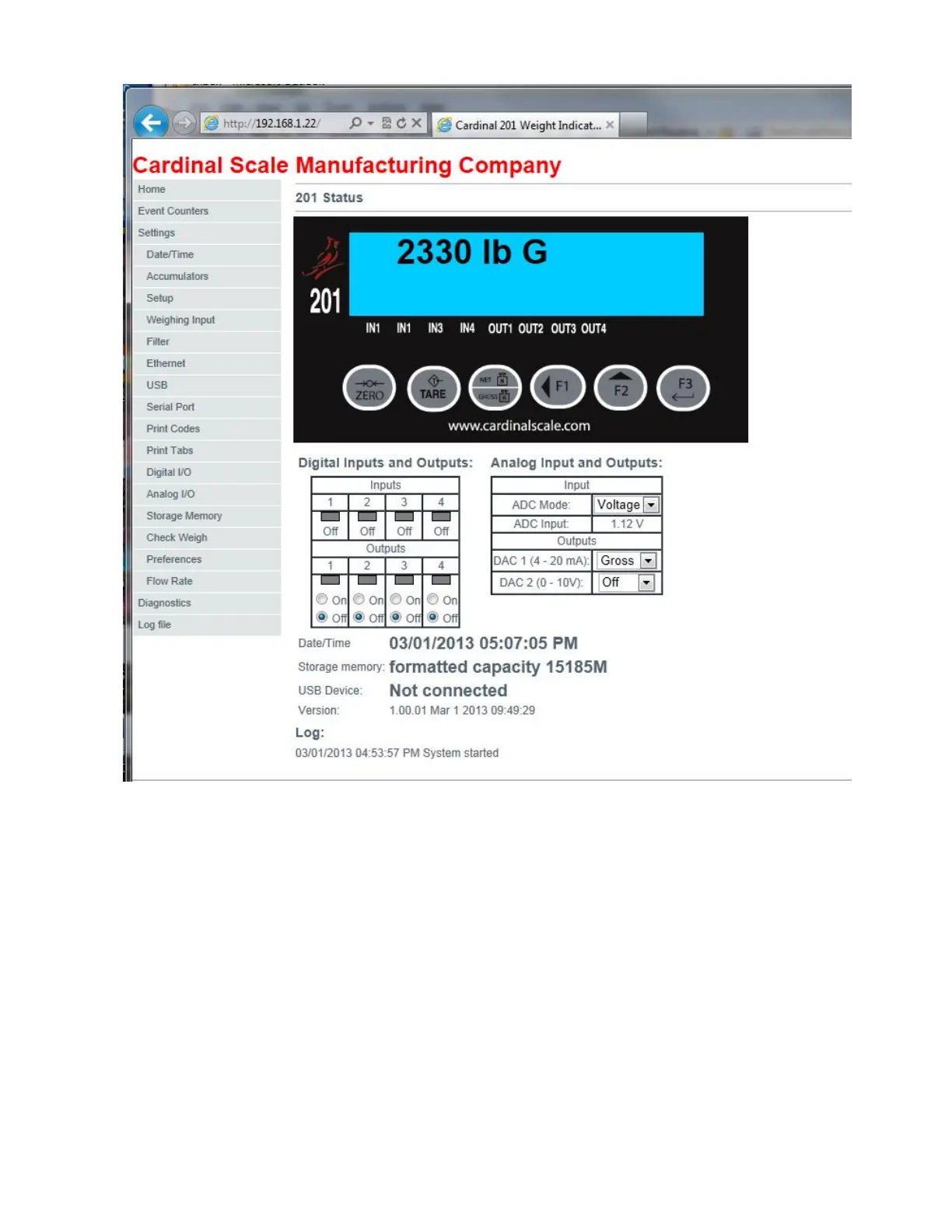 “on” and watch the display on the 201 as it is powered up to see what IP address was
