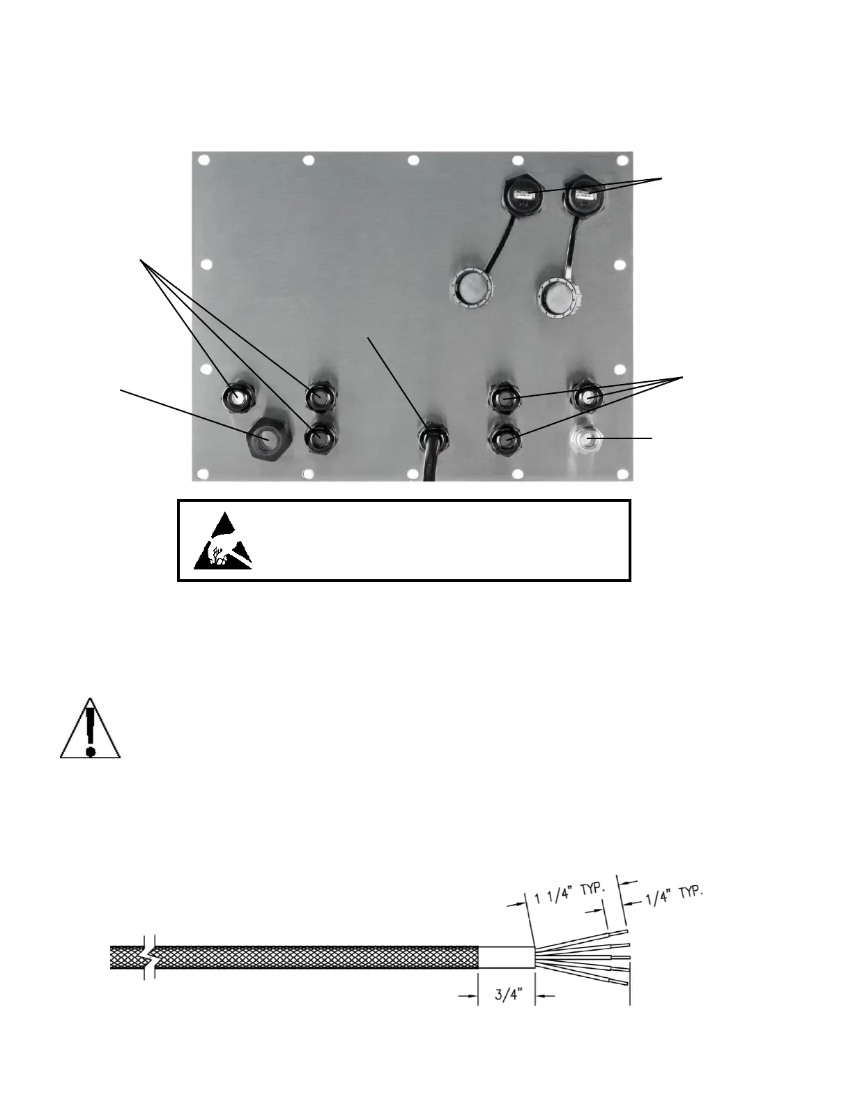 5. With the homerun cable routed into the enclosure, remove approximately 2 1/4 inches of