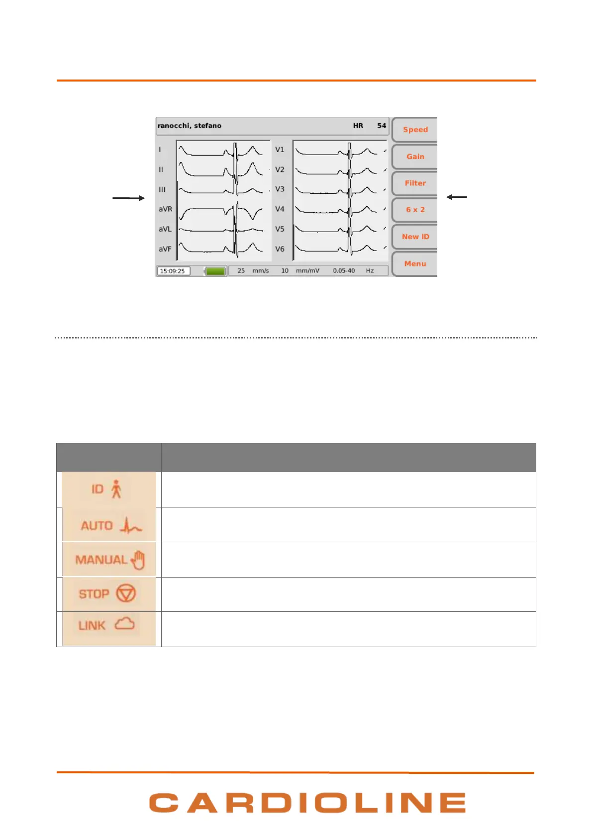 The electrocardiograph has 5 hot keys to activate the following functions: