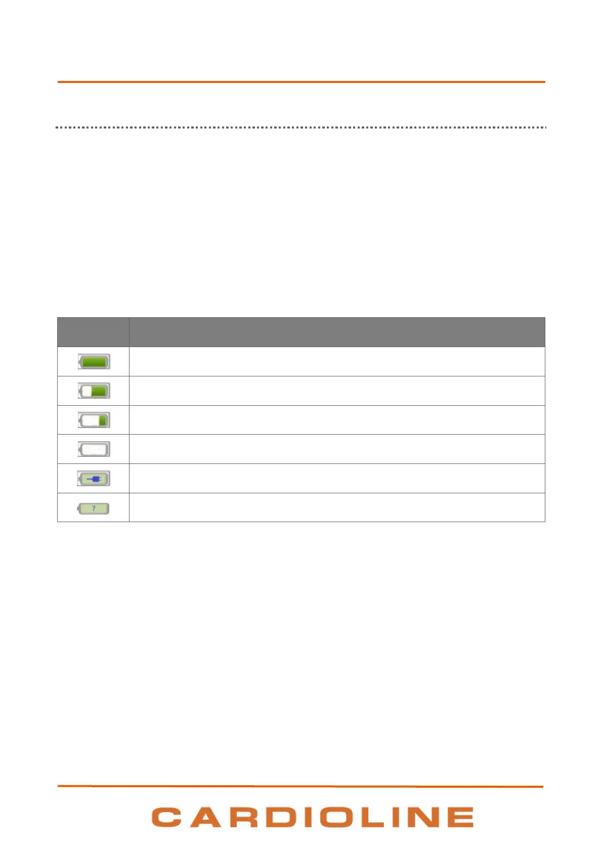 When the device is switched on the “unknown level” icon is displayed until the actual battery level is