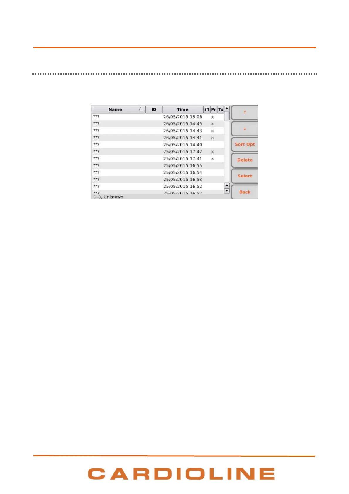 It is possible to move within the list, to select an ECG and to order the list using the function keys: