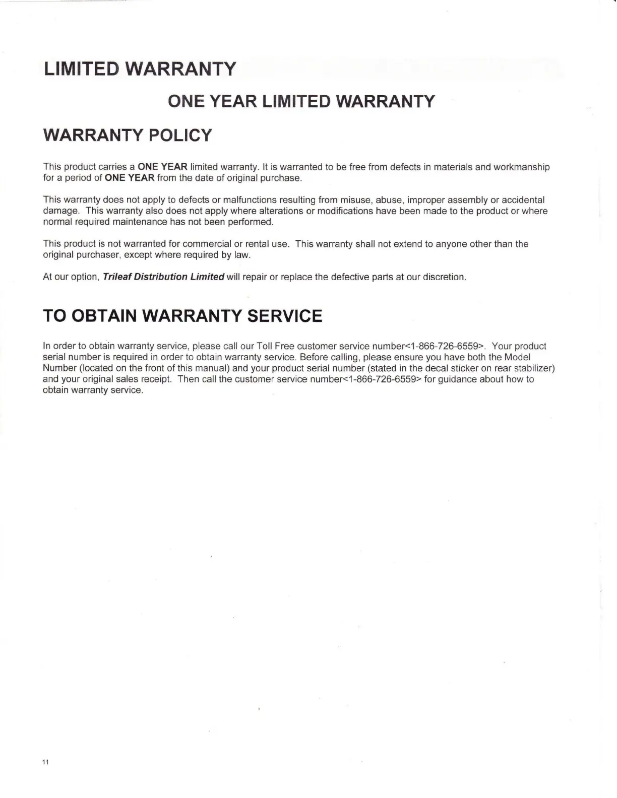 order to obtain warranty service, please call our Toll Free customer service number<1-866-726-6559>. Your product