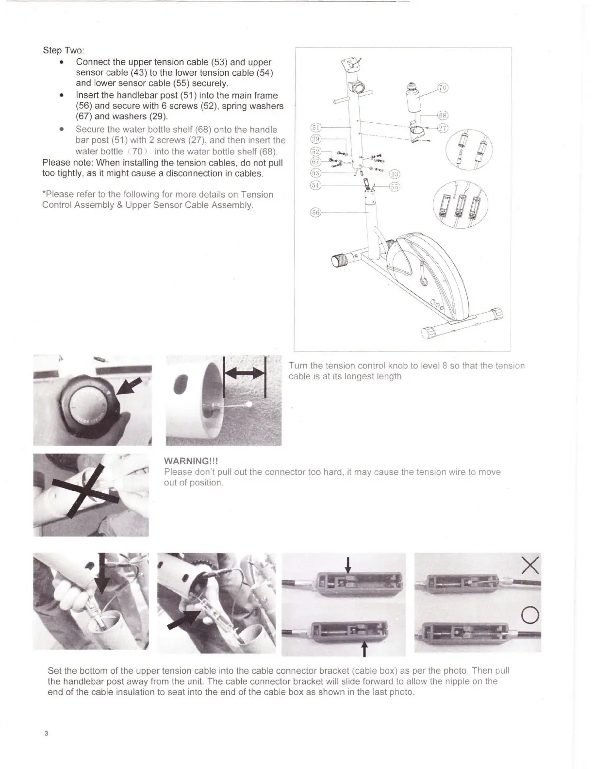 Please note: When installing the tension cables, do not pull