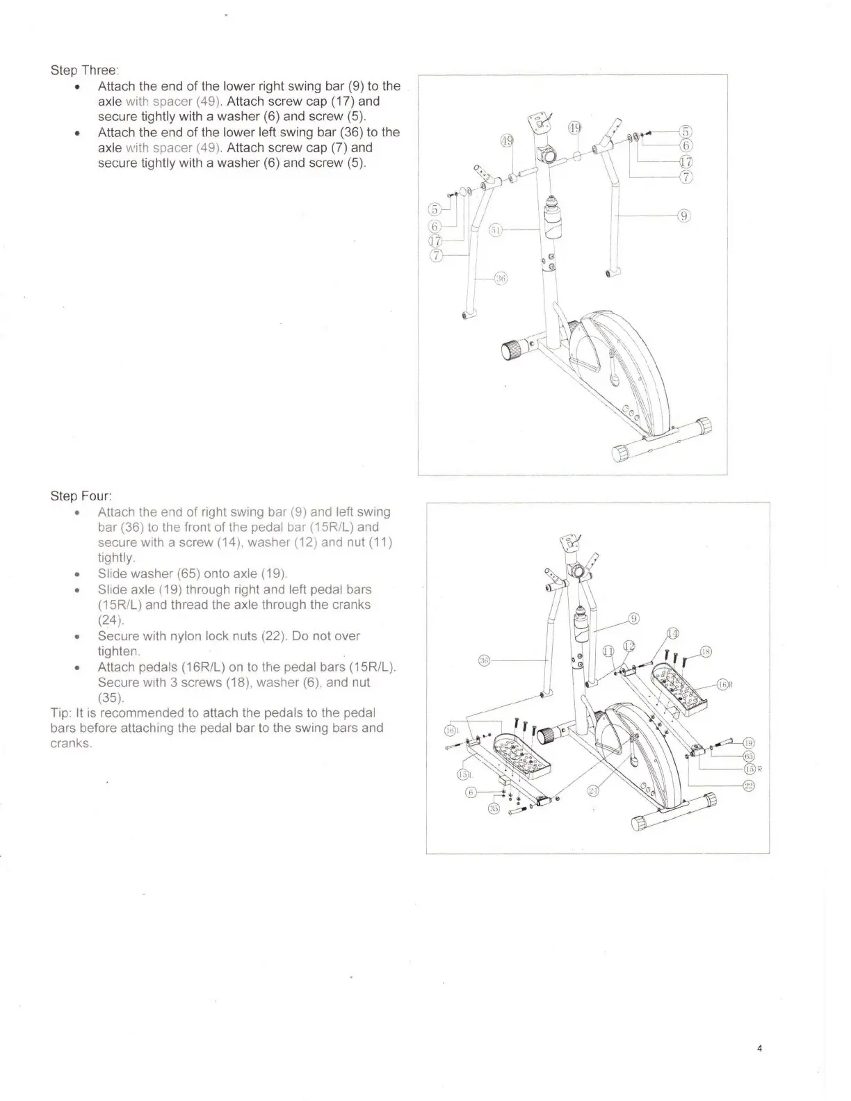 • Attach pedals (16R/L) on to the pedal bars (15R/L).