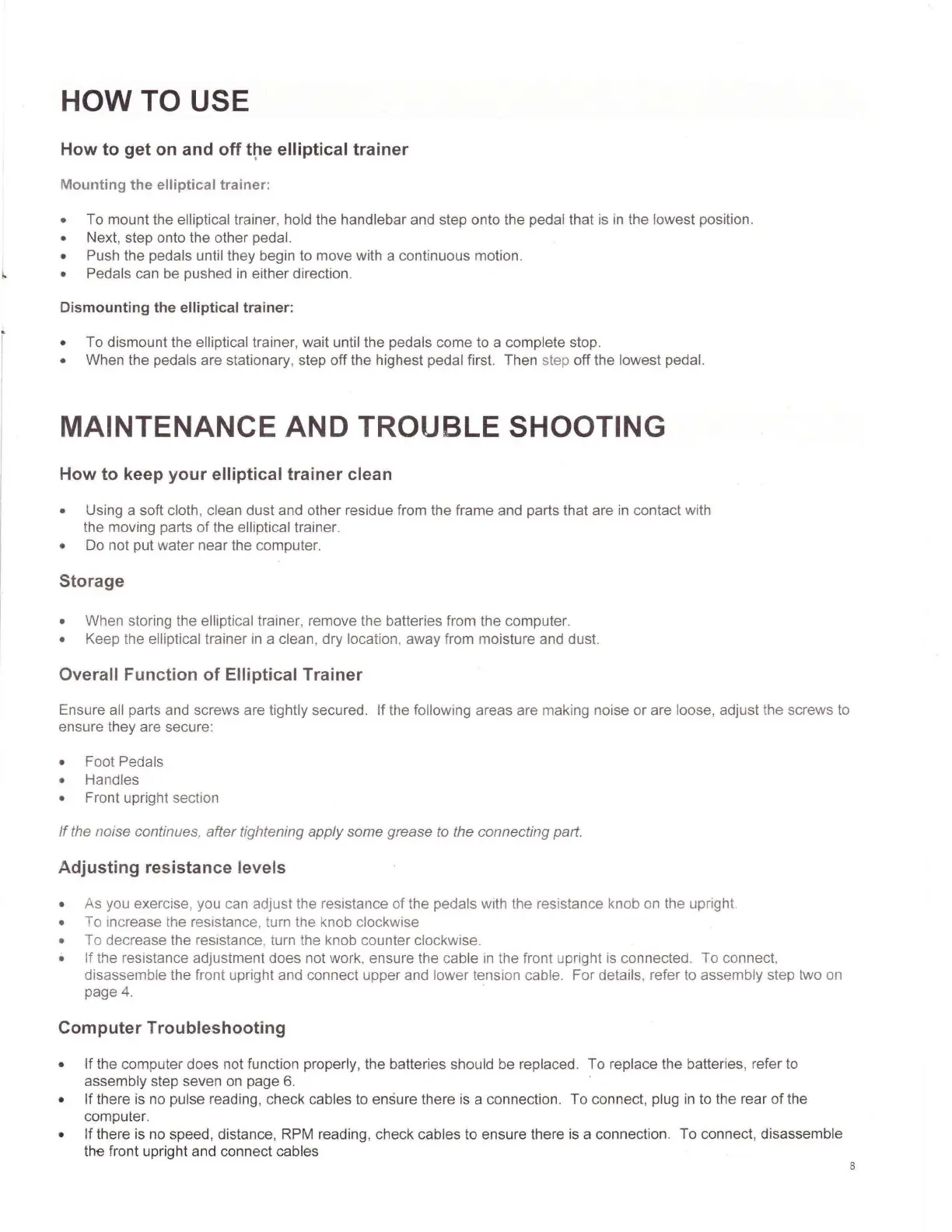 • Keep the elliptical trainer