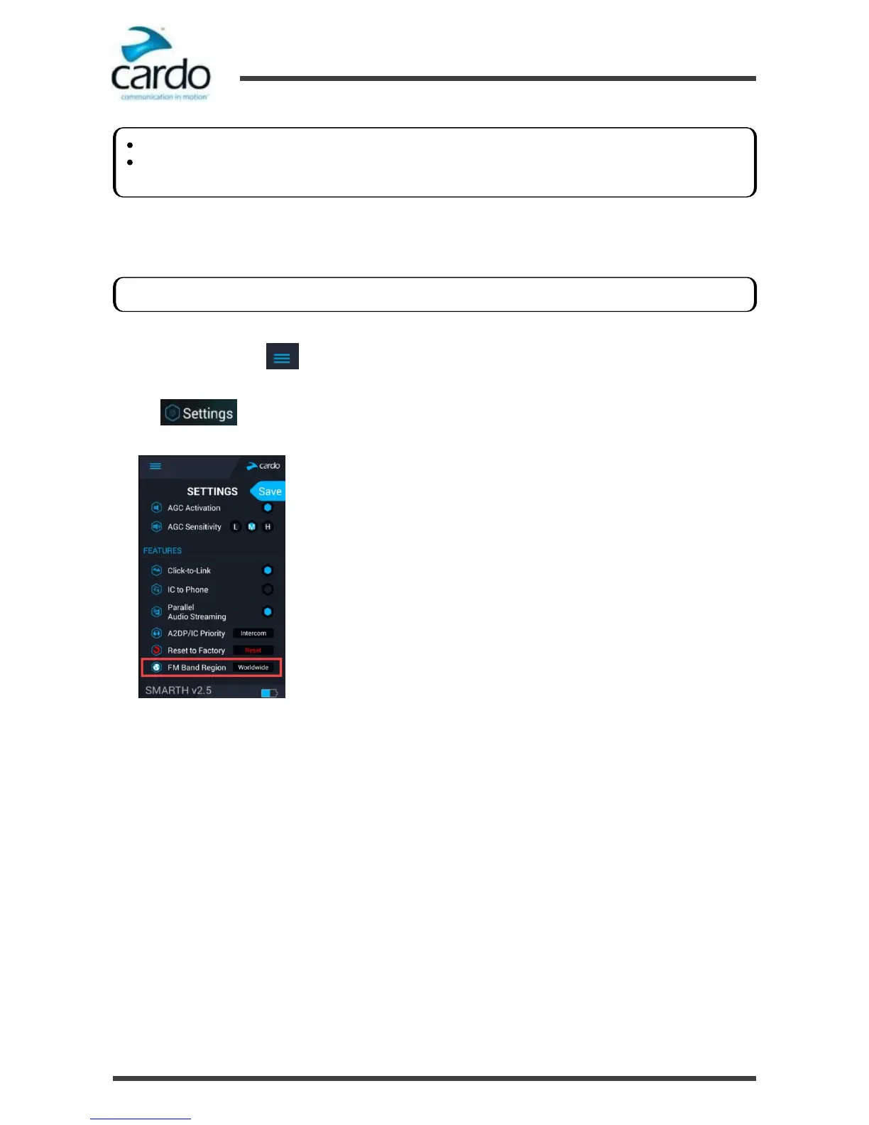 Scroll to the FEATURES section and tap Worldwide or Japan to toggle your FM Band Region.