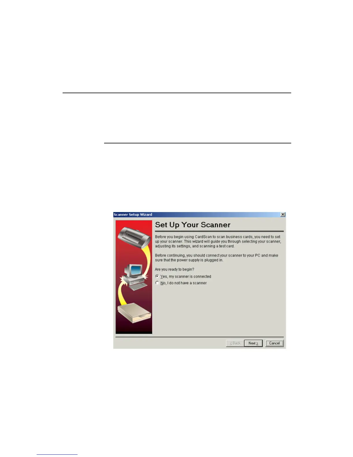 After a pause, the CardScan window opens, and the Scanner Set Up