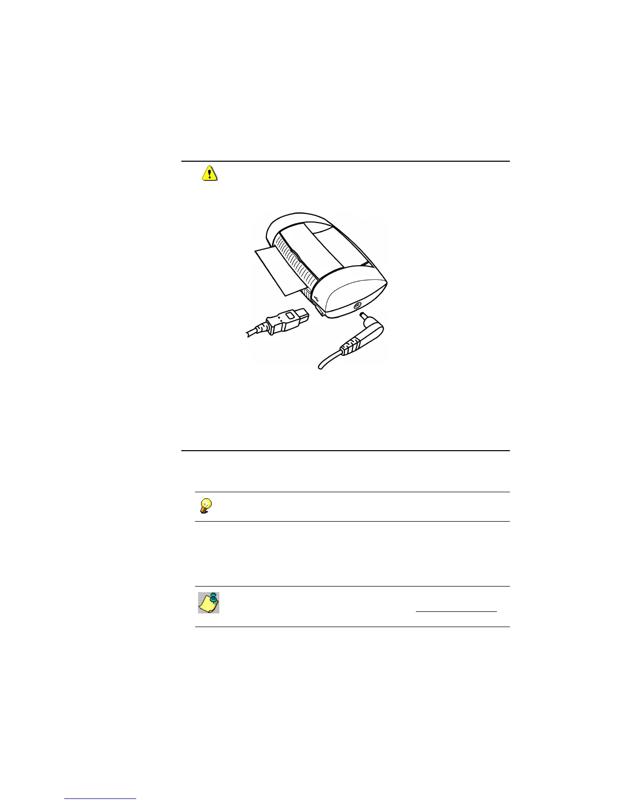 • Connect the AC adapter to the scanner. Plug the AC adapter into a