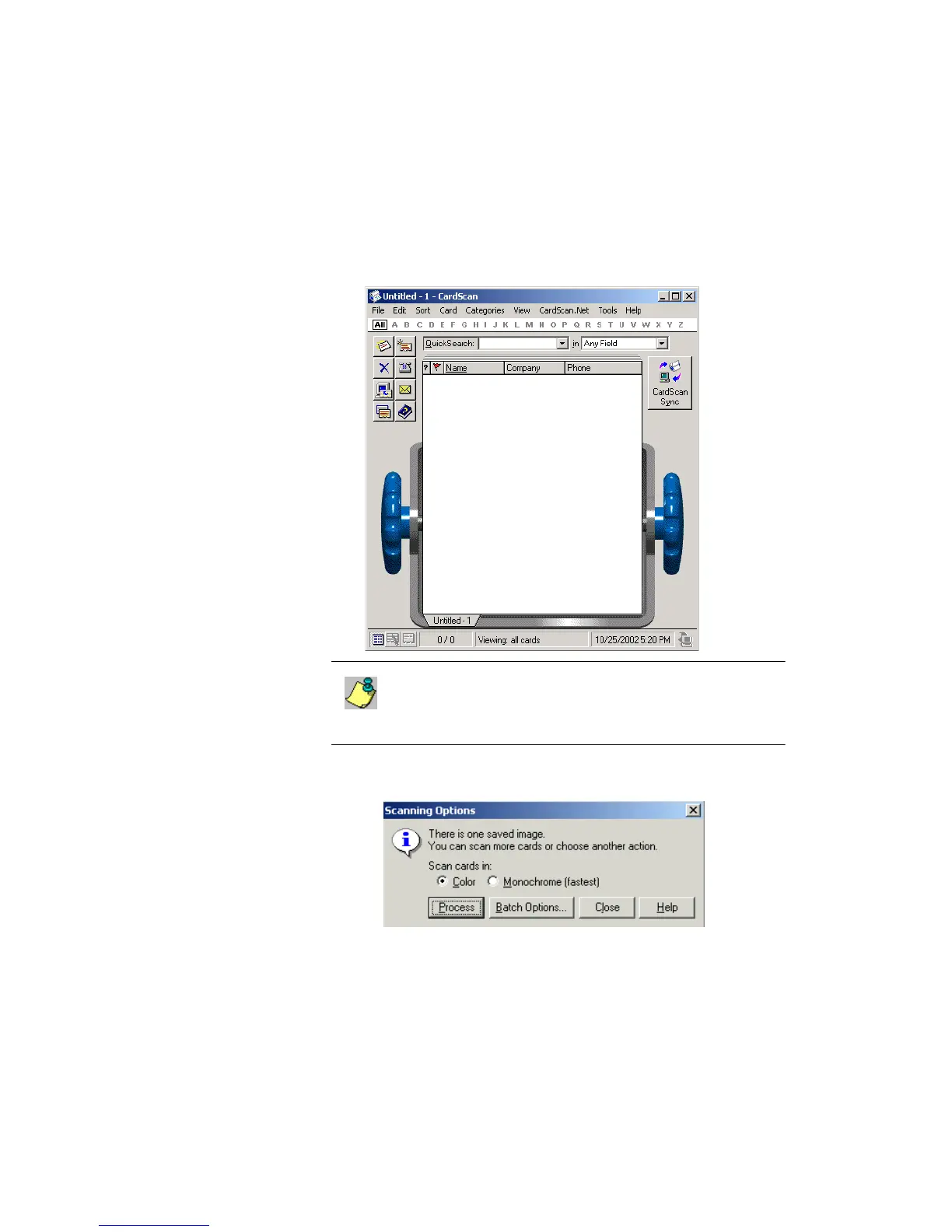 1. On the desktop, choose Start→Programs→CardScan to open