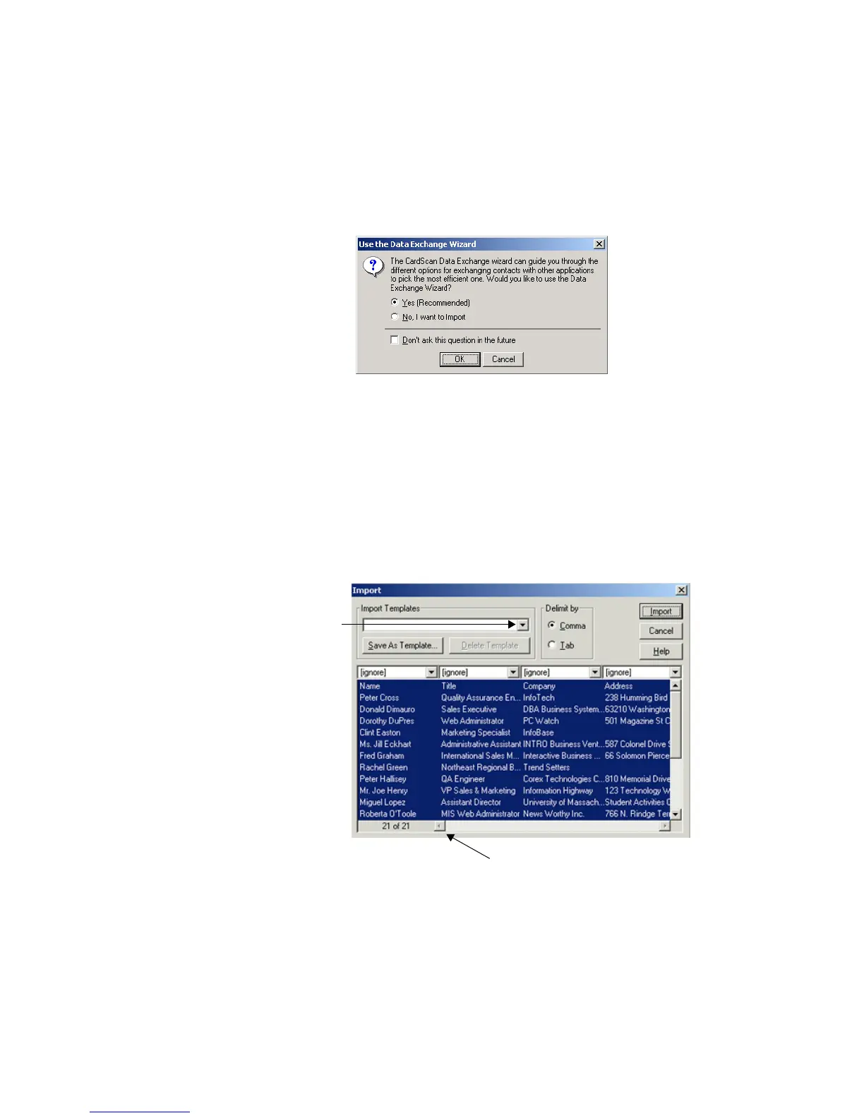 98 or later, the Data Exchange Wizard will guide you to the CardScan