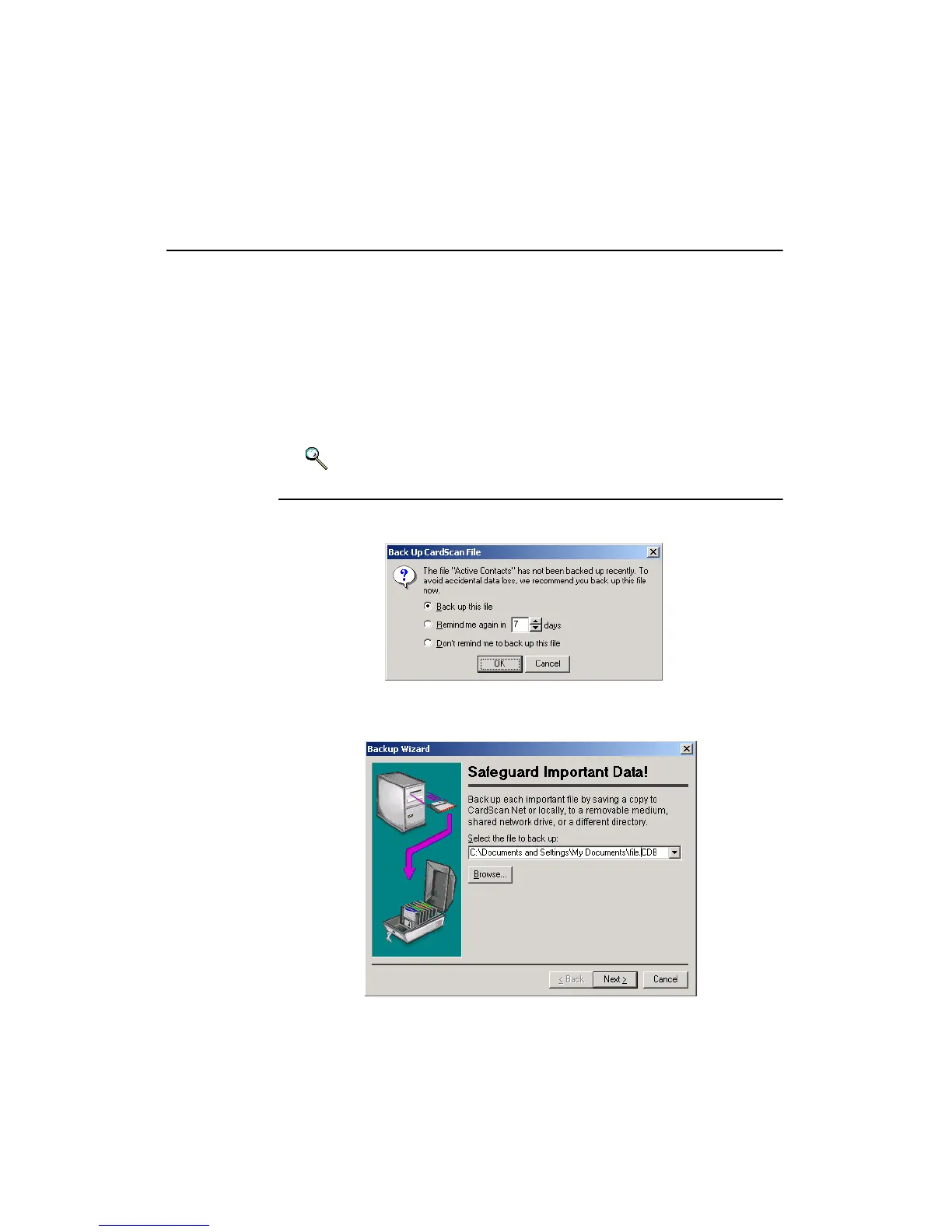 against loss, you must back up contacts regularly. With CardScan, you can