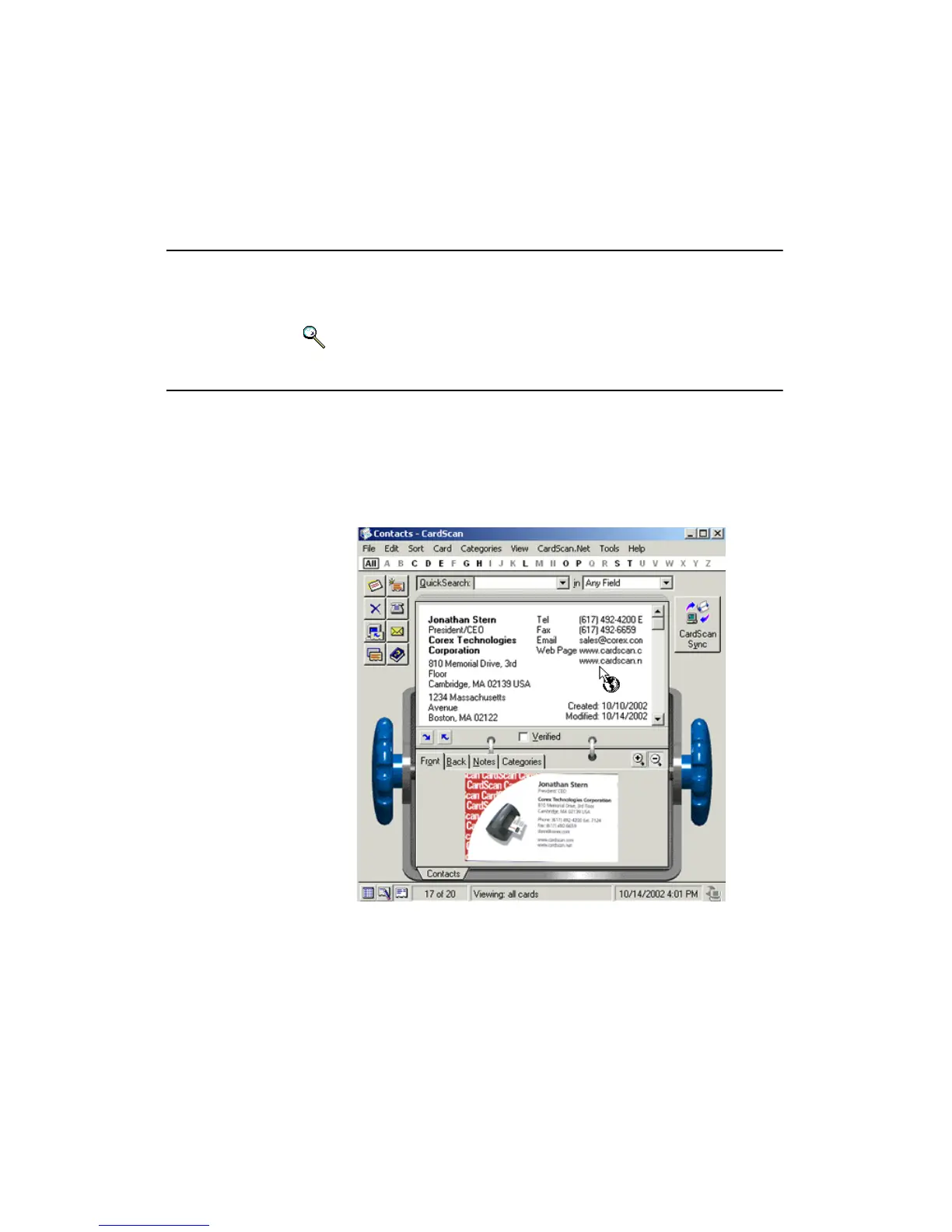 When a contact is displayed in CardScan’s Summary view, just a click of the