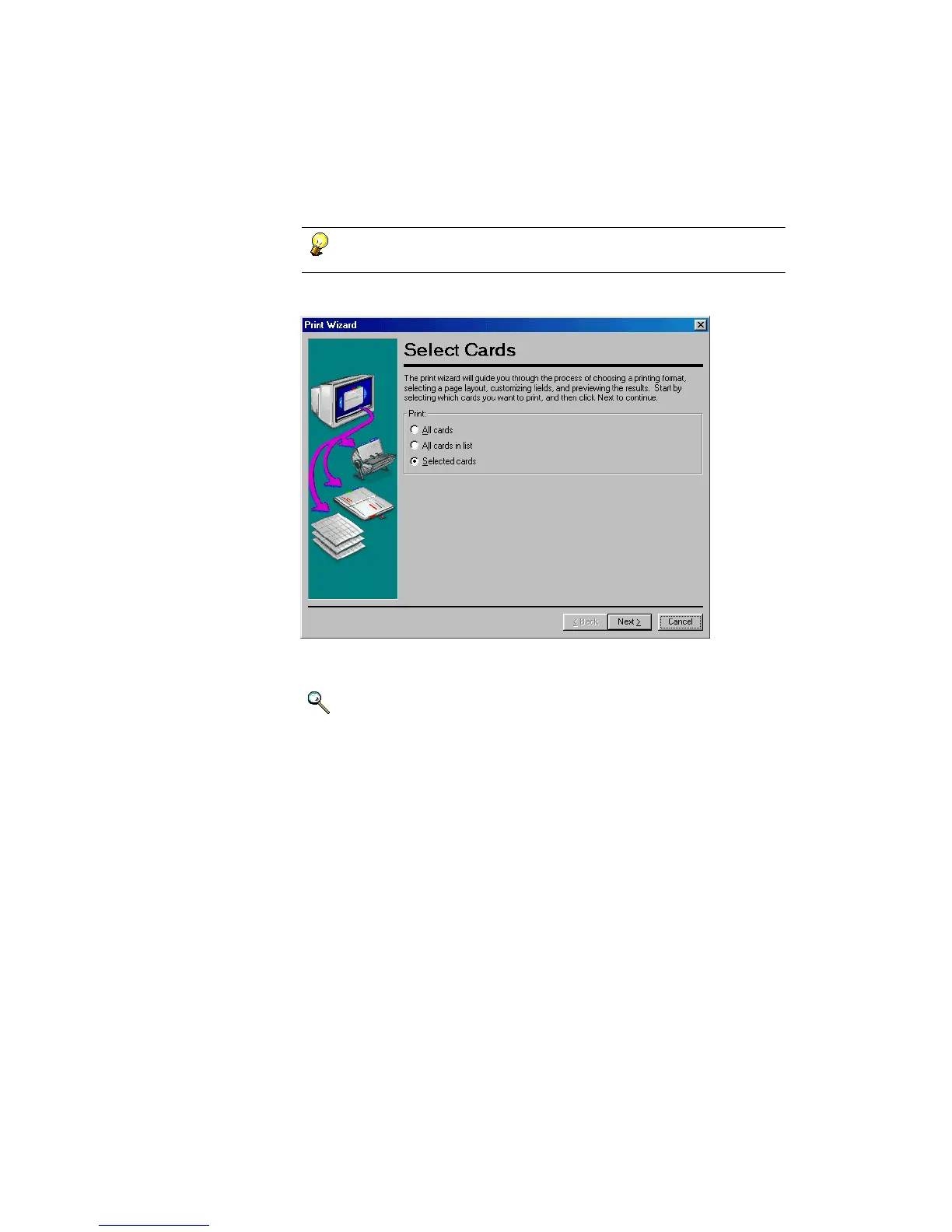 2. Select cards and follow the Wizard to print your contacts the way you