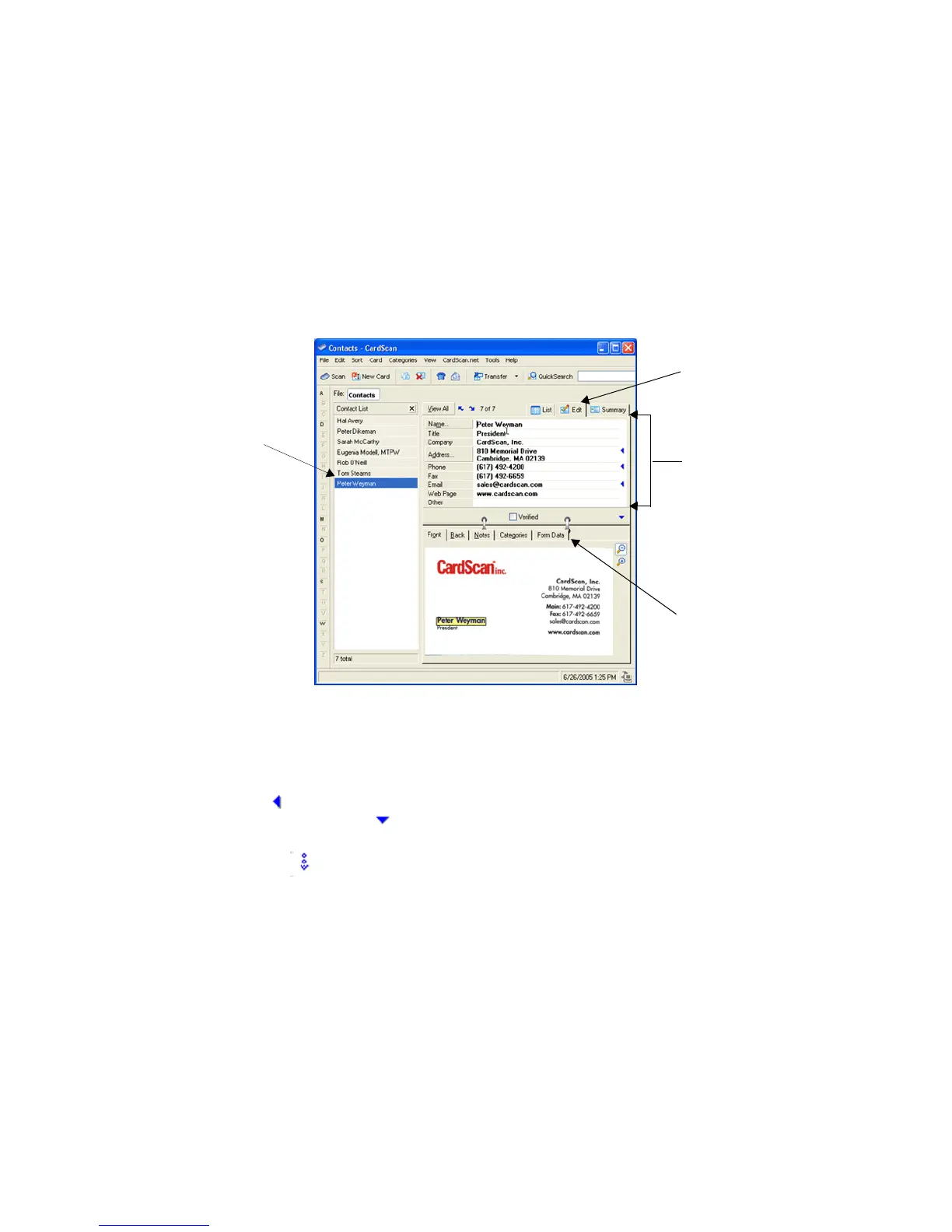 • When the fields containing information are not visible, CardScan displays this