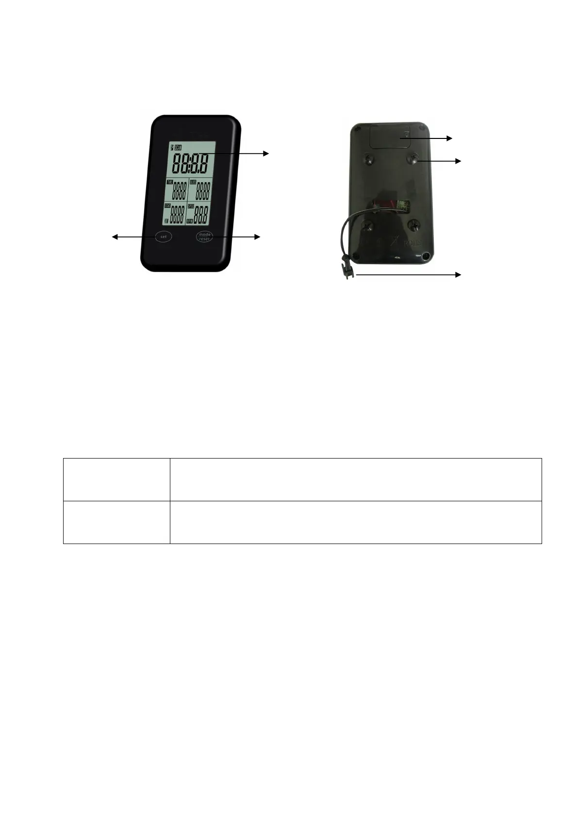 SET Para configurar el valor de TIME, DISTANCE, CALORIES.