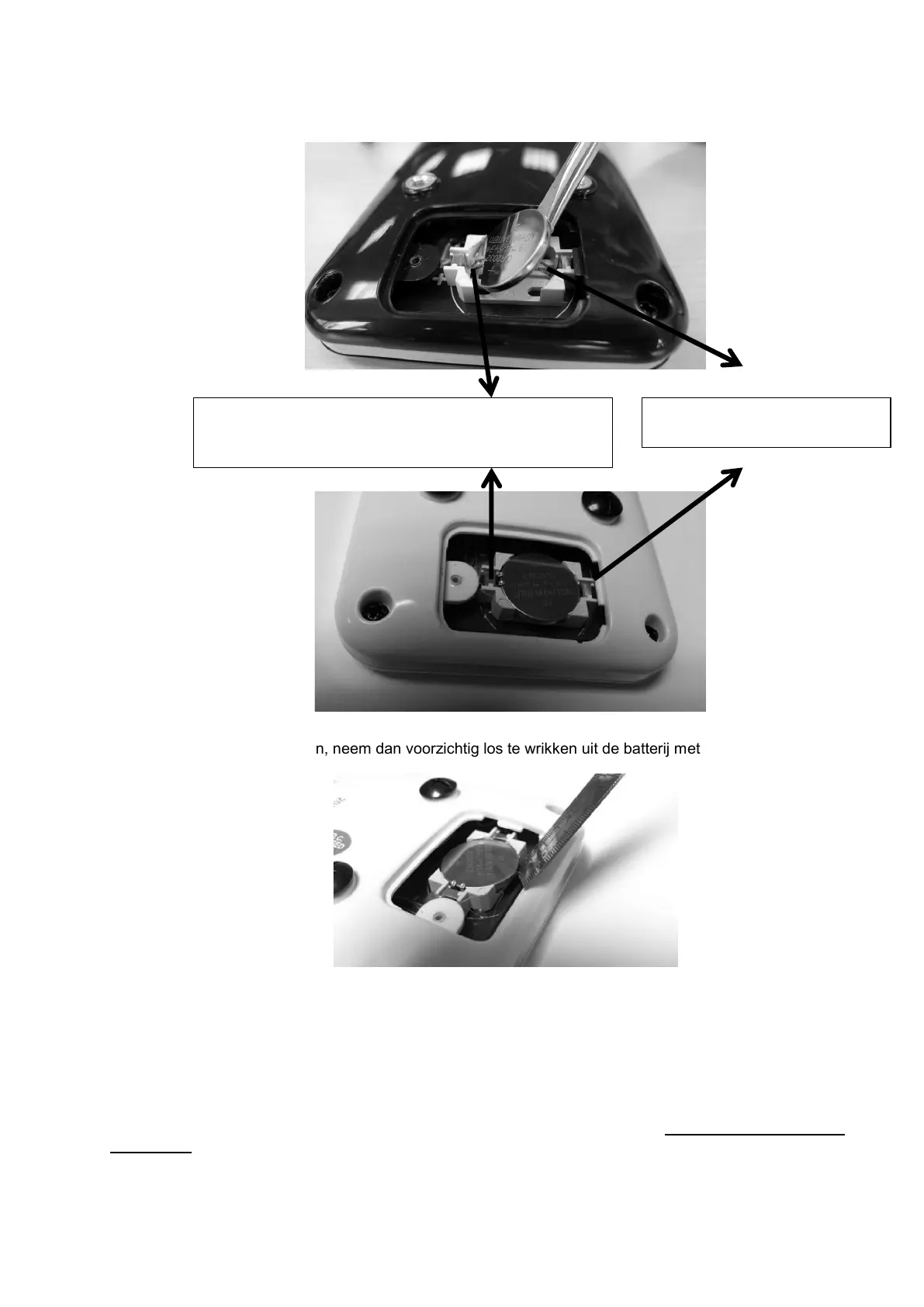 4-Voor de batterij te wisselen, neem dan voorzichtig los te wrikken uit de batterij met een dun mes.