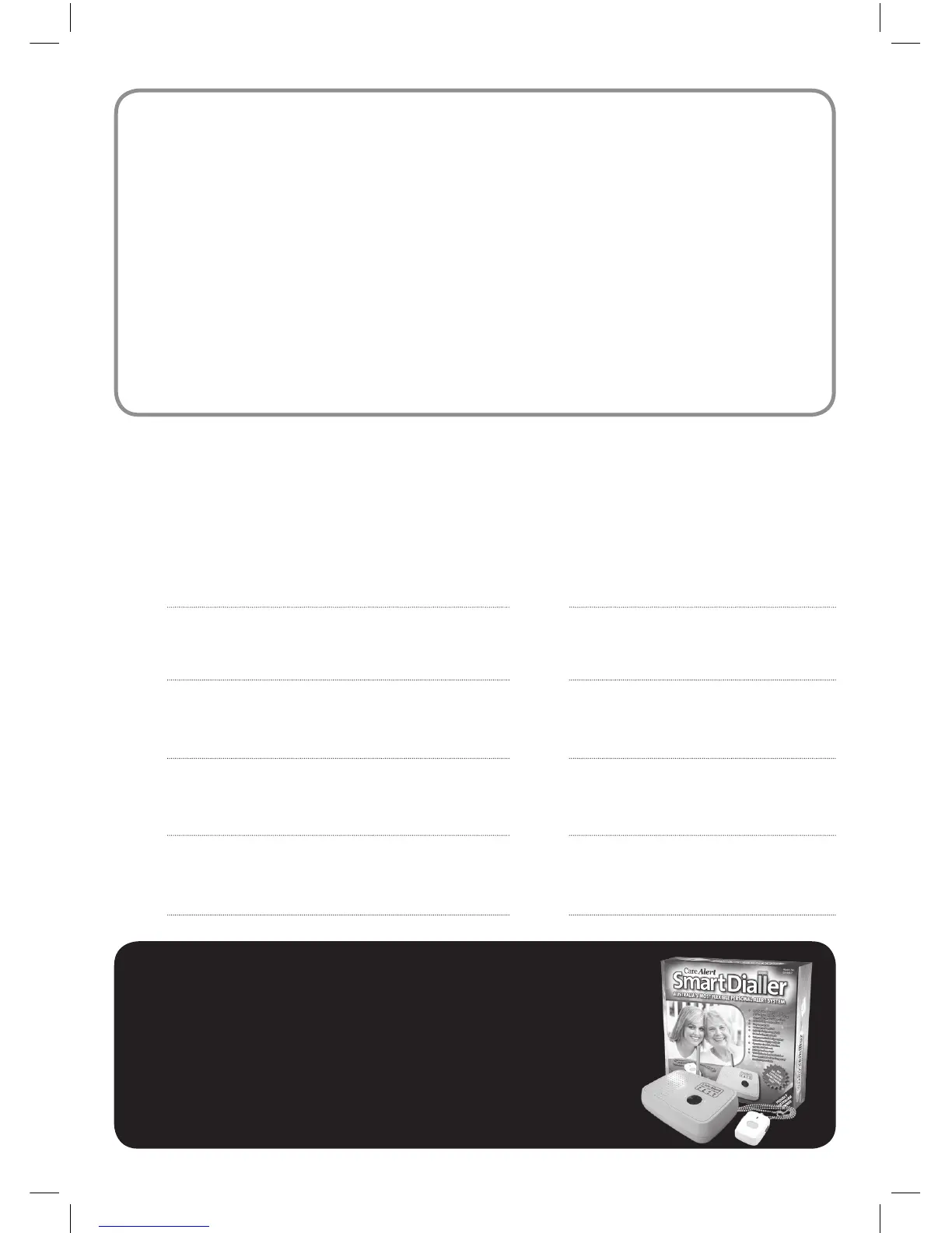 Smart Dialler. A notication pad with up to 10 tear o sheets have been provided in the