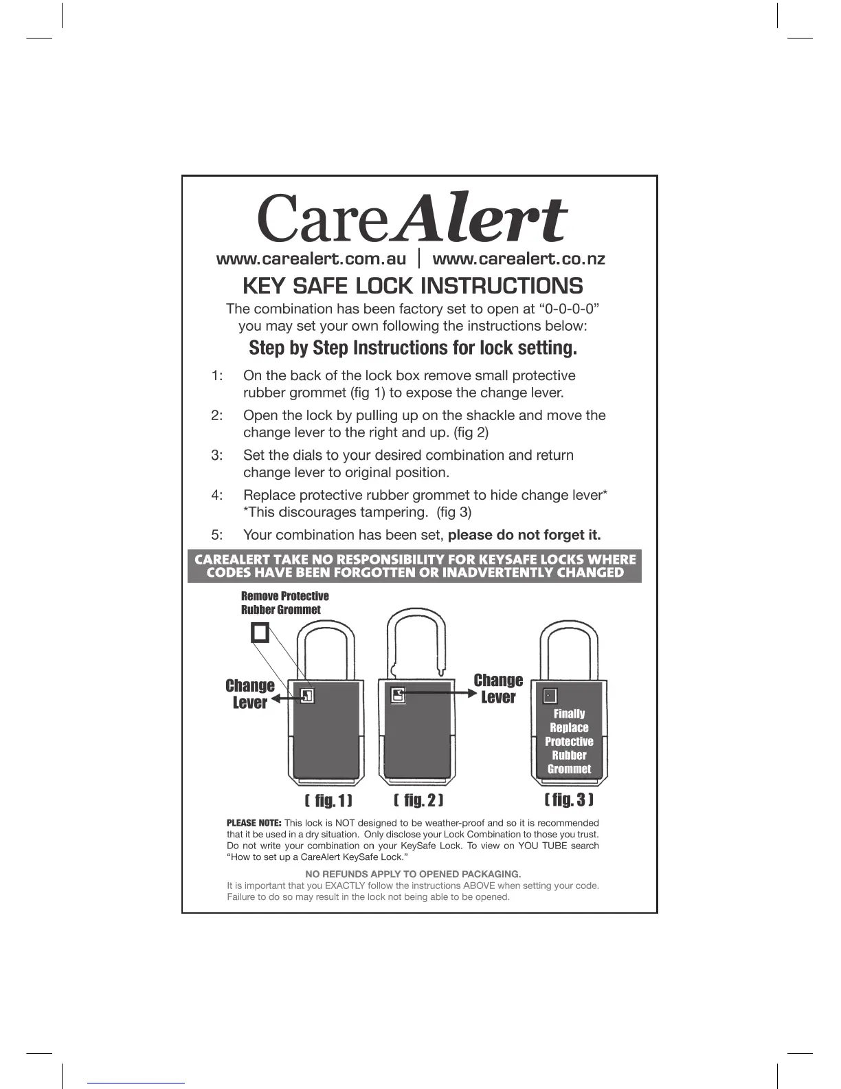 PLEASE NOTE: Your responsibility with the use of a Key safe lock. If you or any other user of the Key