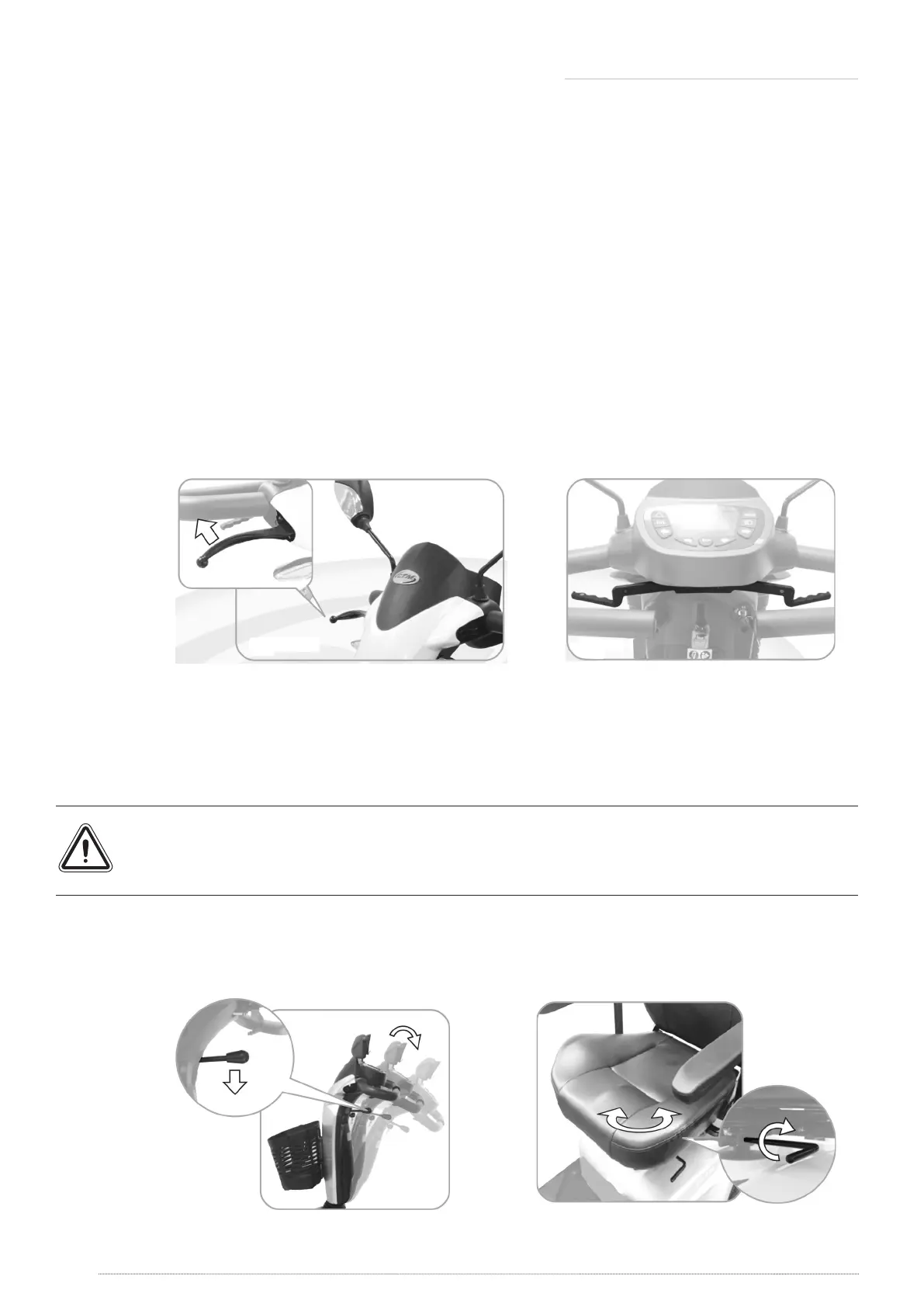 » Pull the right throttle to move scooter forward. Pull the left throttle to move scooter