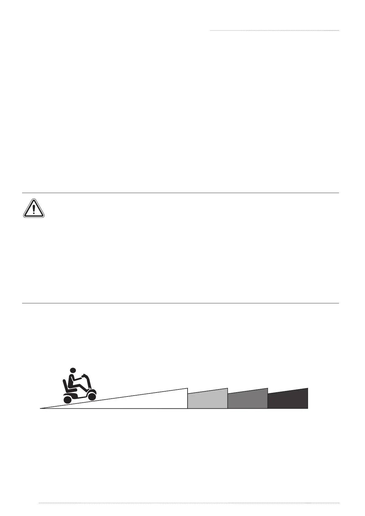 » Your scooter’s ability to travel up inclines is aected by your weight, your scooter’s speed,
