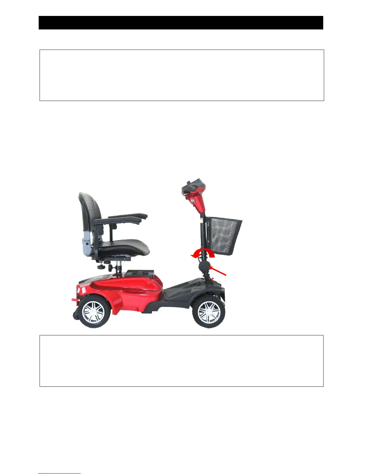 Before lifting or driving the scooter make certain the tiller adjustment knob is fully