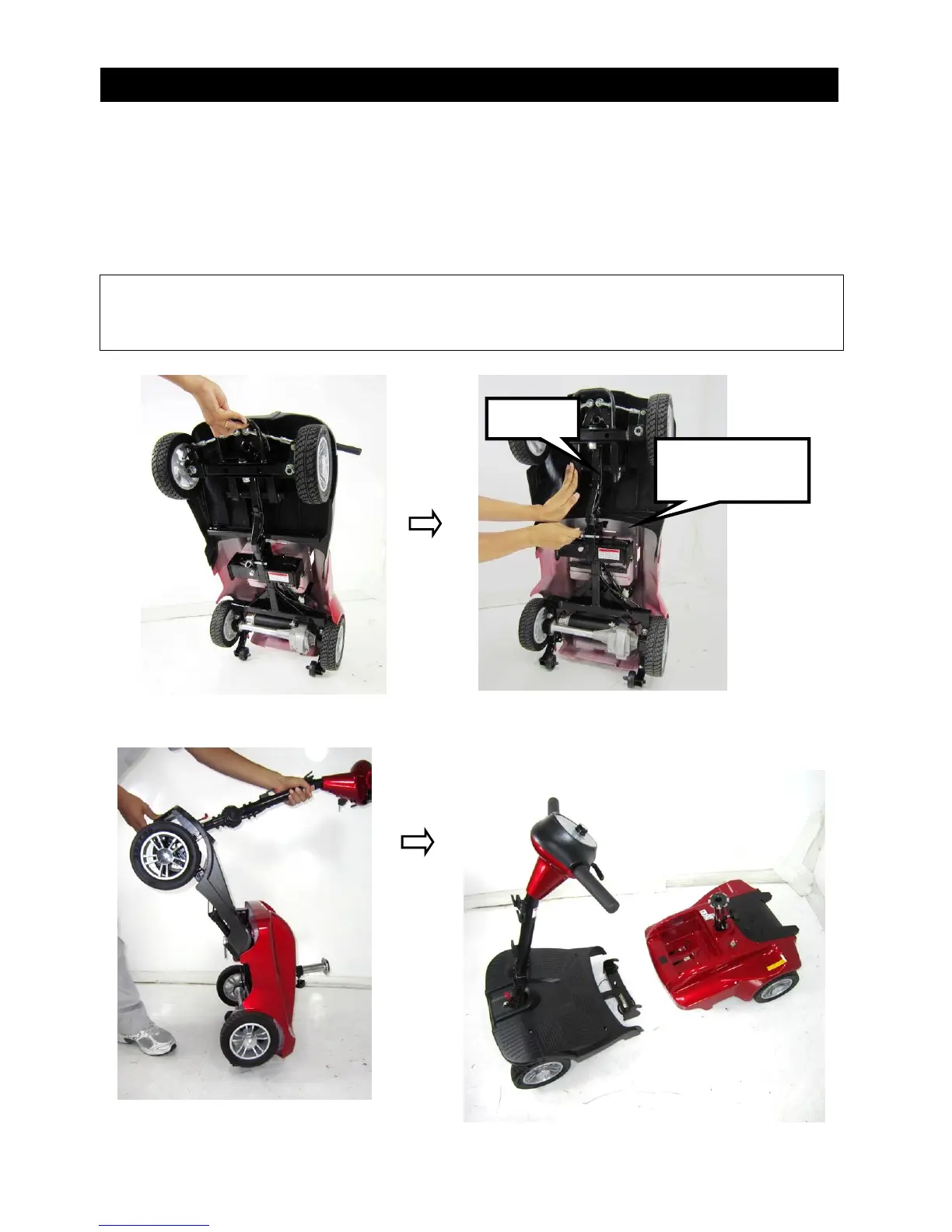 1. Lift the tiller to stand the scooter in an upright position (Fig. 4.1)