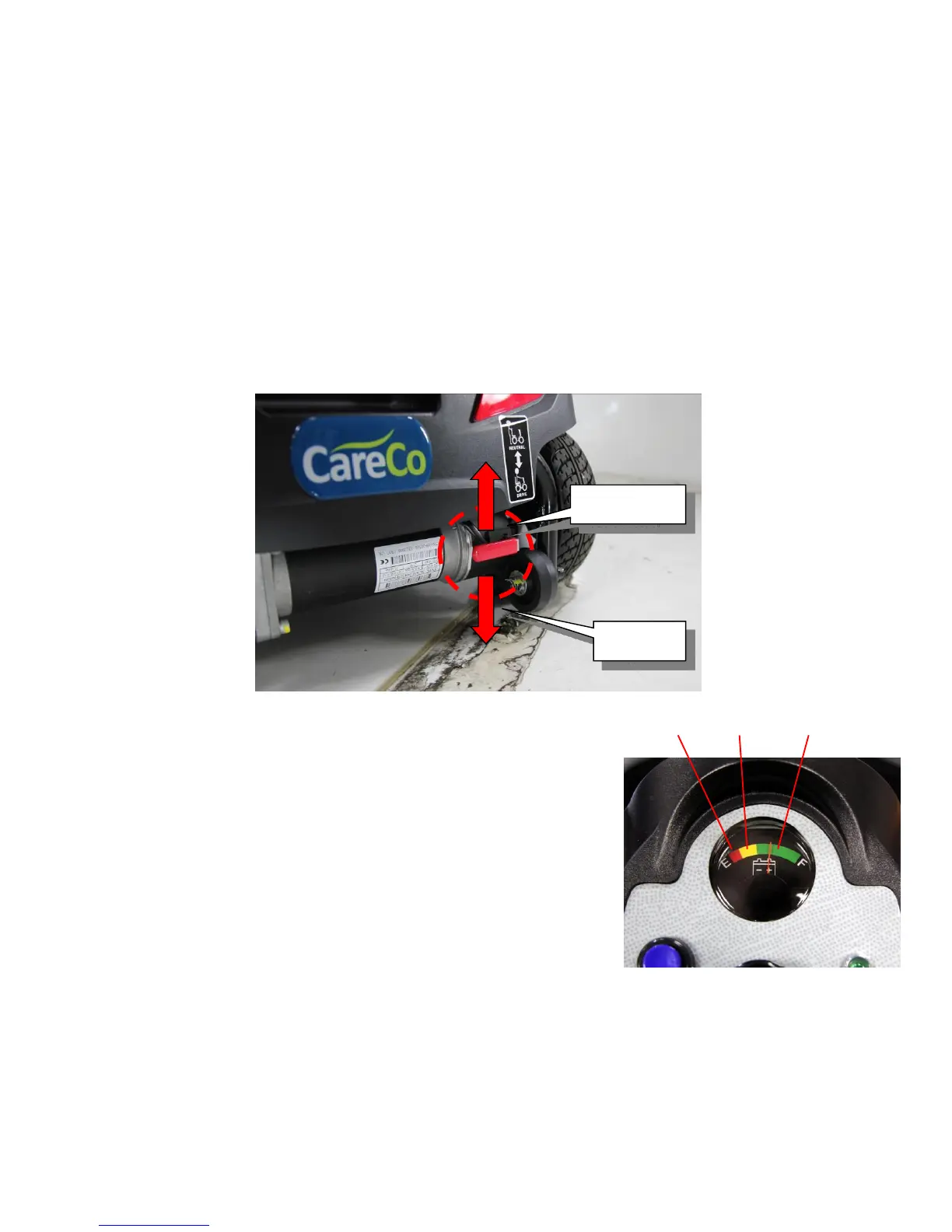 – To put the scooter into “freewheel mode”, push the freewheel lever down completely and