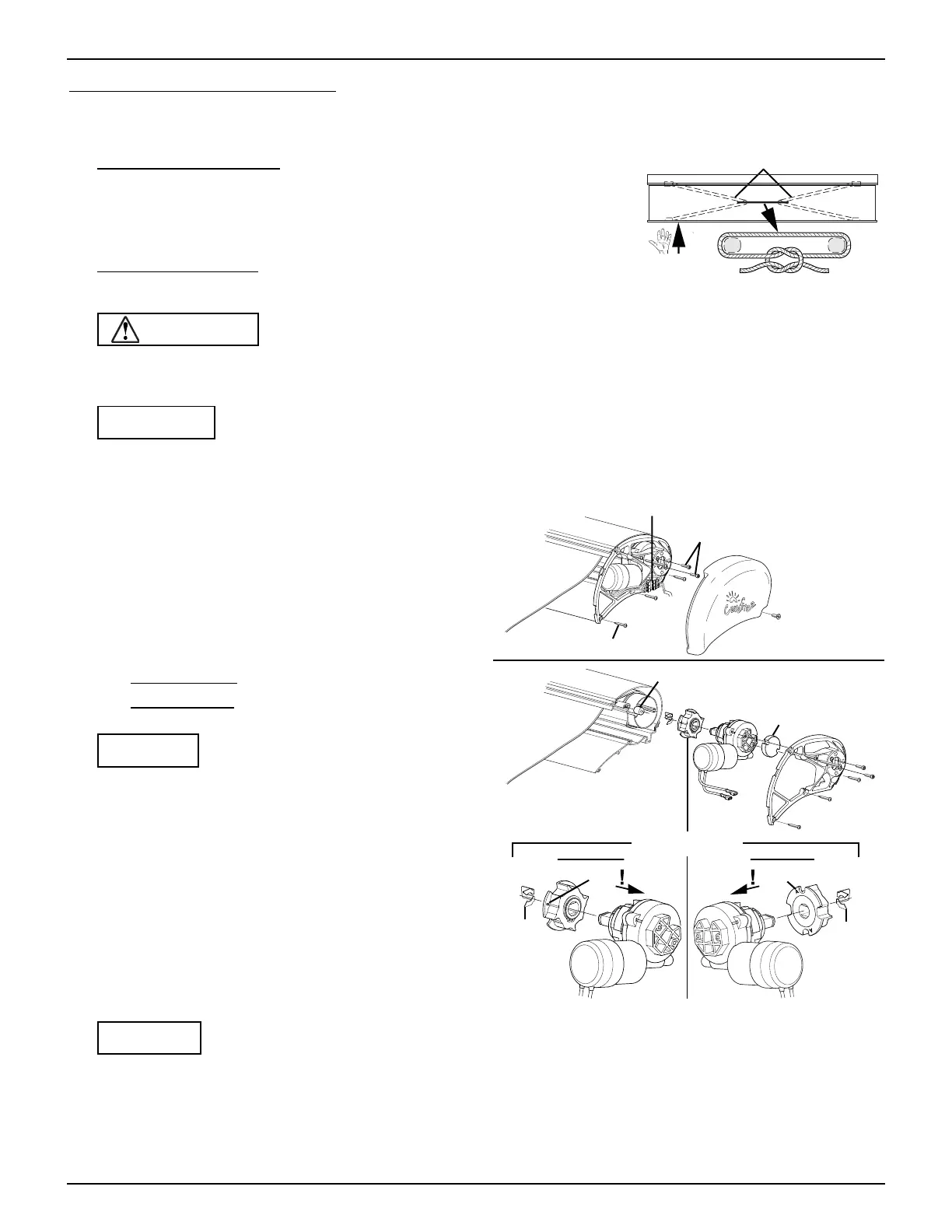 CAUTION If the awning is closed when the motor and end cap screws are removed, the