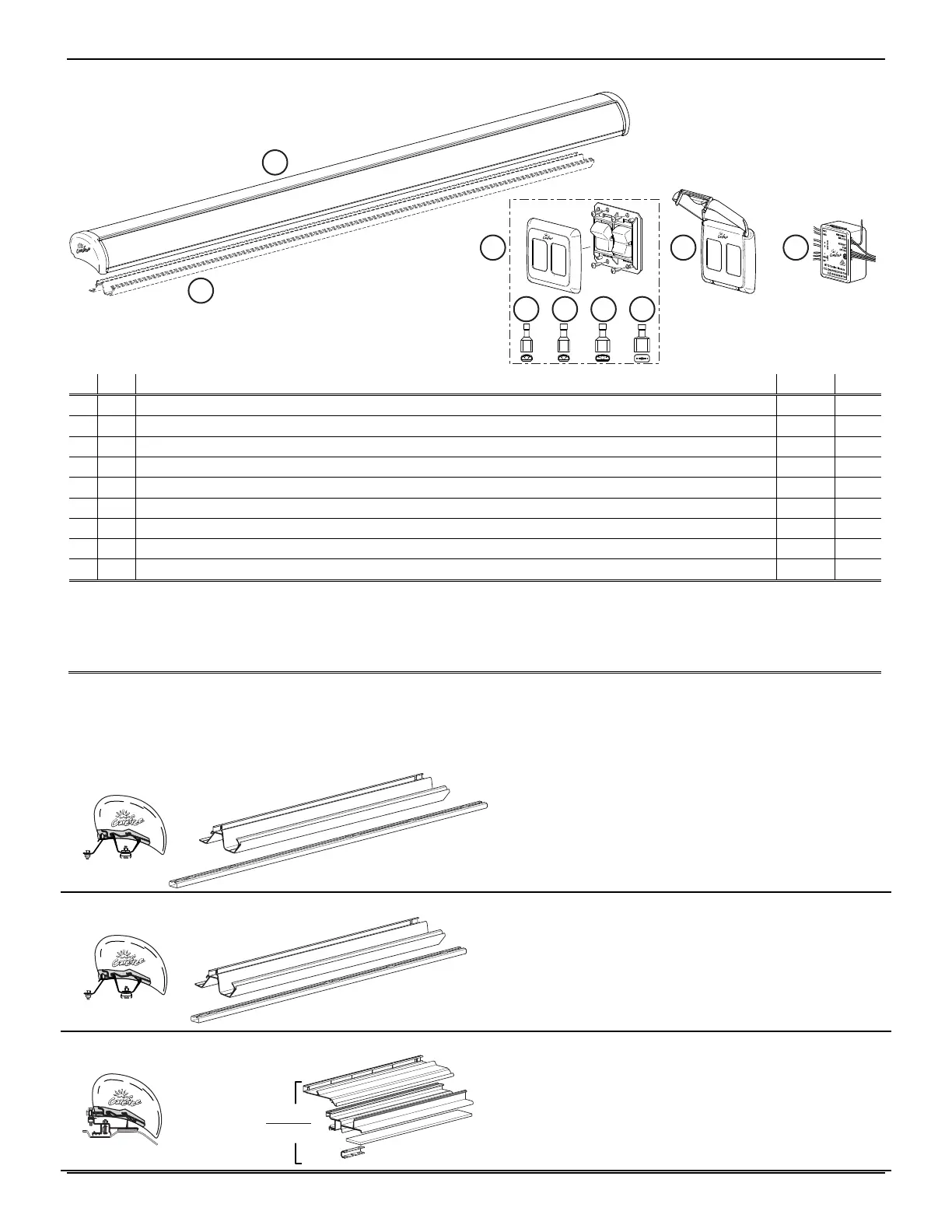 NOTES: 1. Specific awning configuration is specified at time of order, including awning length, fabric, color etc. check