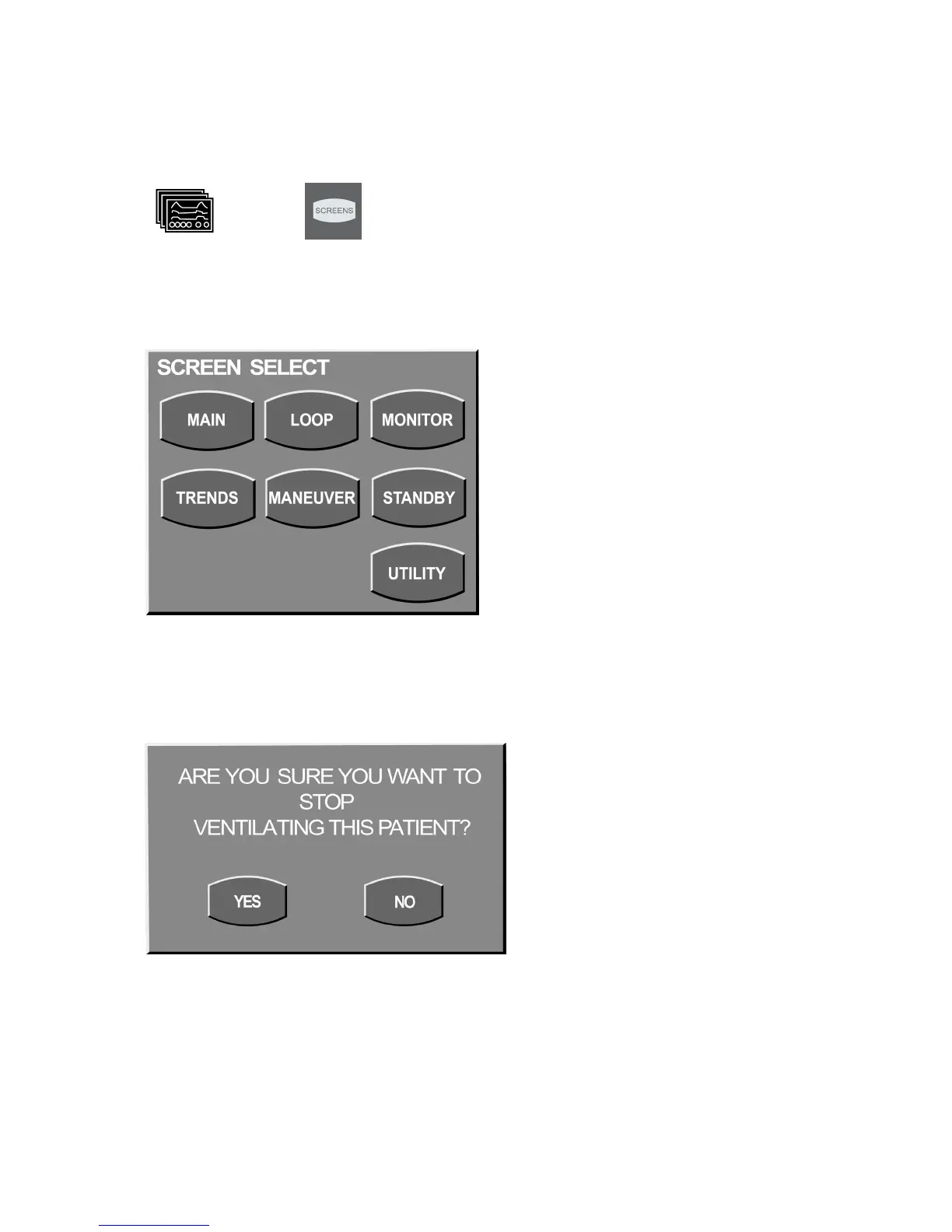 To initiate Standby, press the Screens membrane button on the UIM identified by the icons shown here.
