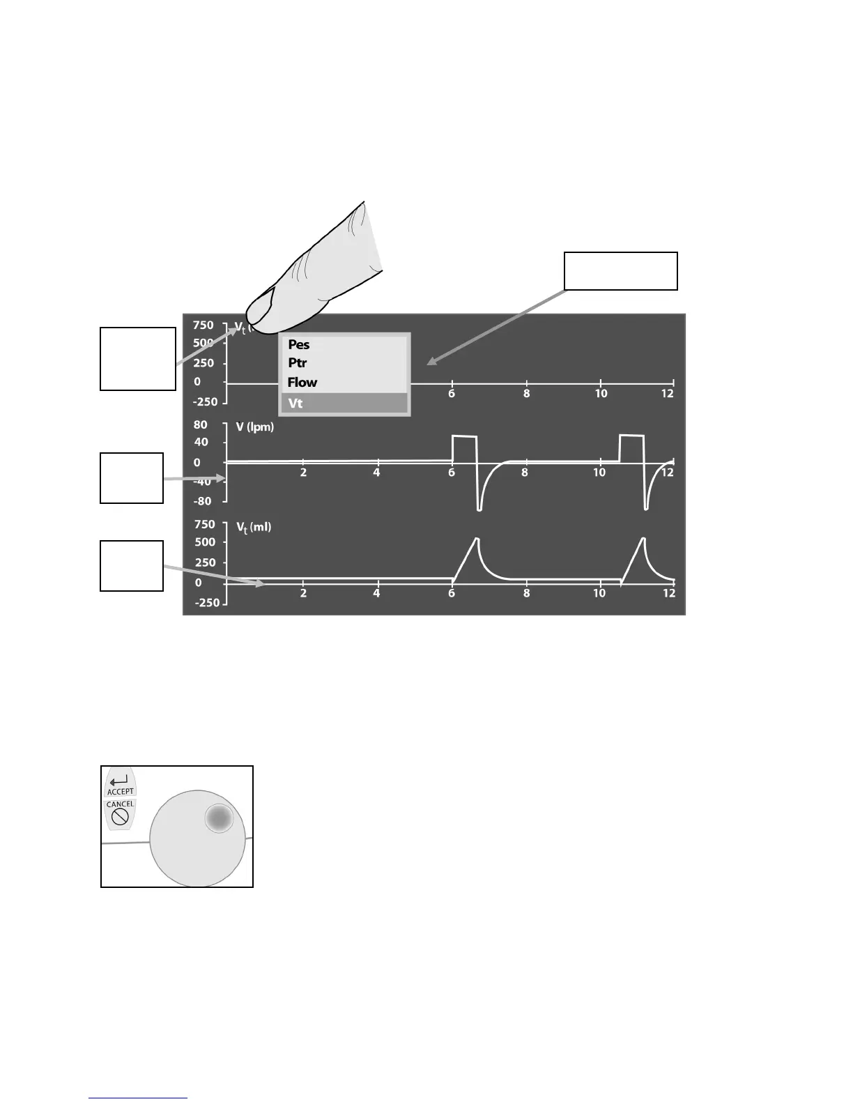 touch screen menu again or press the Accept membrane button shown here next to the data dial.