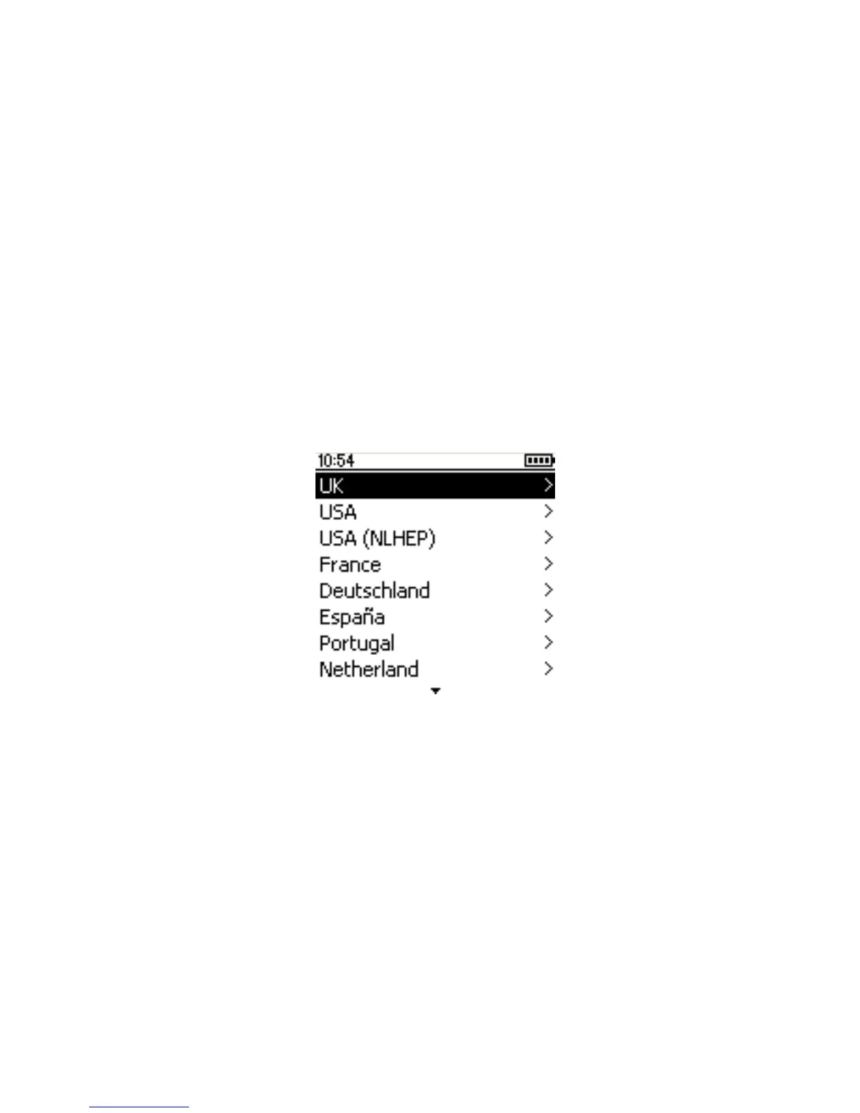 Mit den Pfeiltasten nach oben/unten das gewünschte Land auswählen