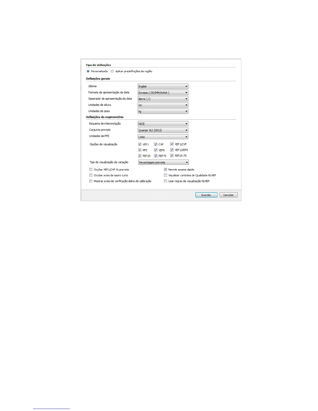Ao seleccionar a opção ‘Personalizado’ no topo do ecrã poderá ajustar