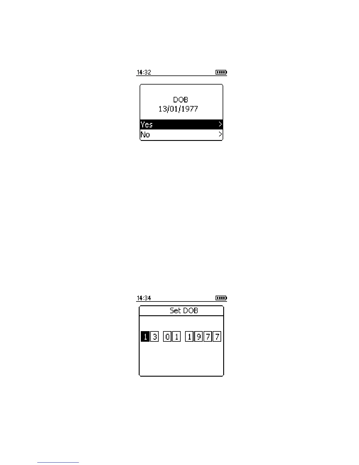 of birth to be entered. Use the up and down keys to enter the date of