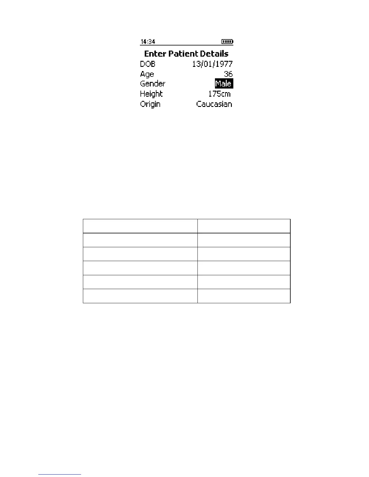 The up and down keys should also be used to adjust the patient’s age
