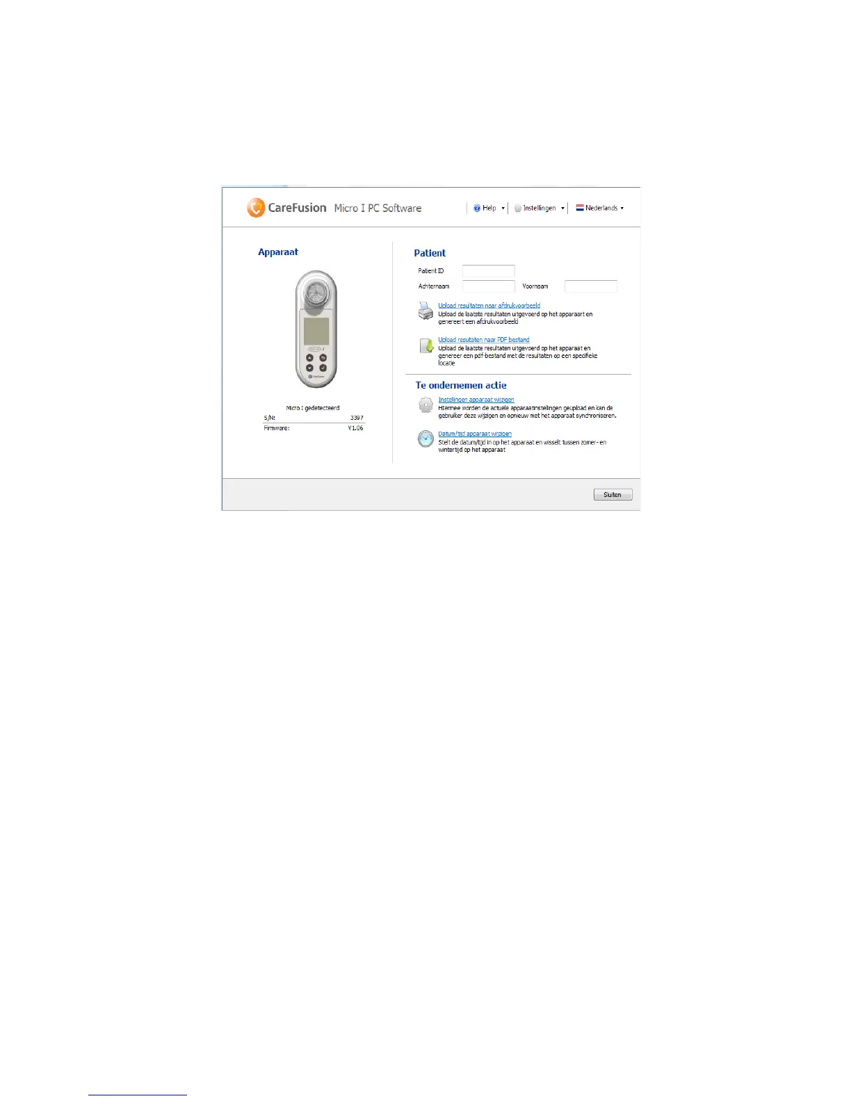 In dit scherm kunt u een patiënt-id en de naam van de patiënt