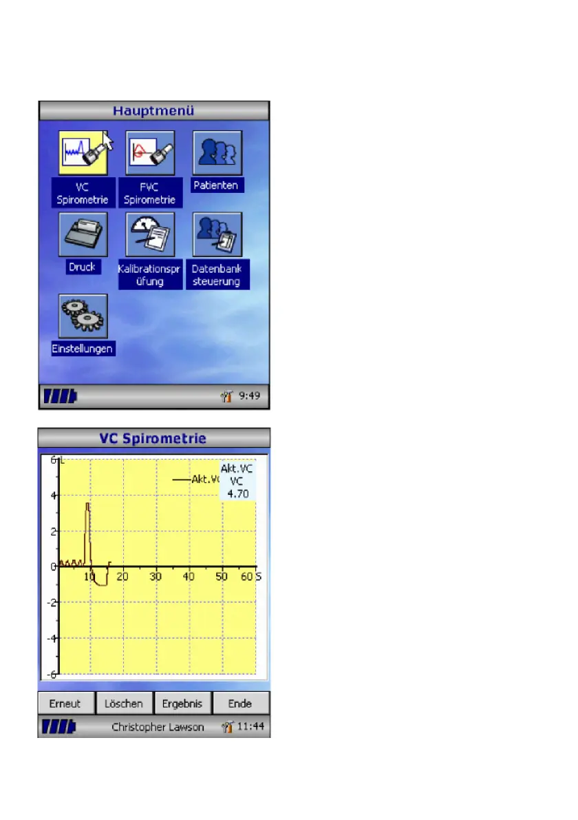 Nach Auswahl von VC Spirometrie wird