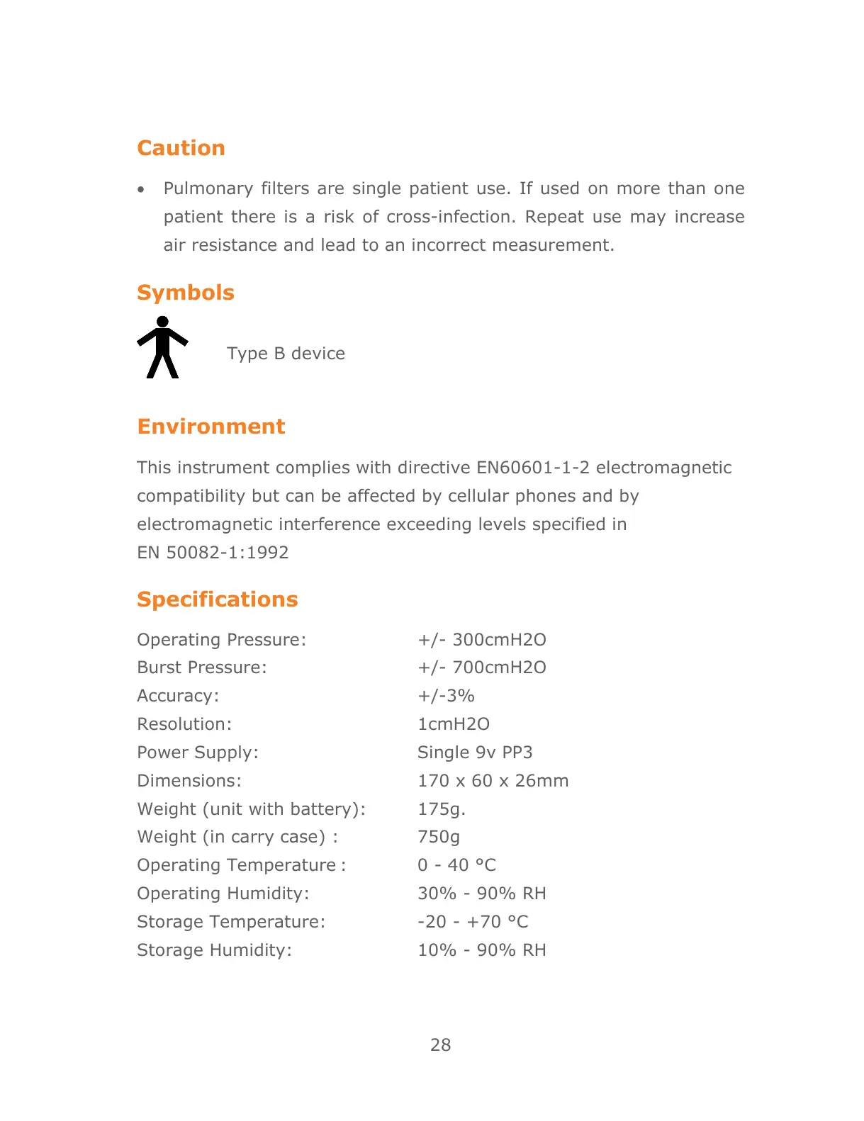 Operating Pressure: +/- 300cmH2O