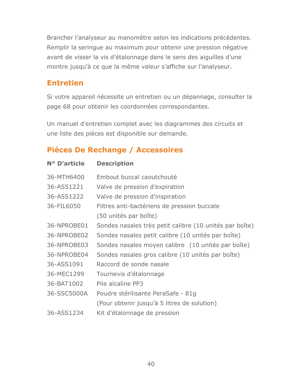 Pièces De Rechange / Accessoires