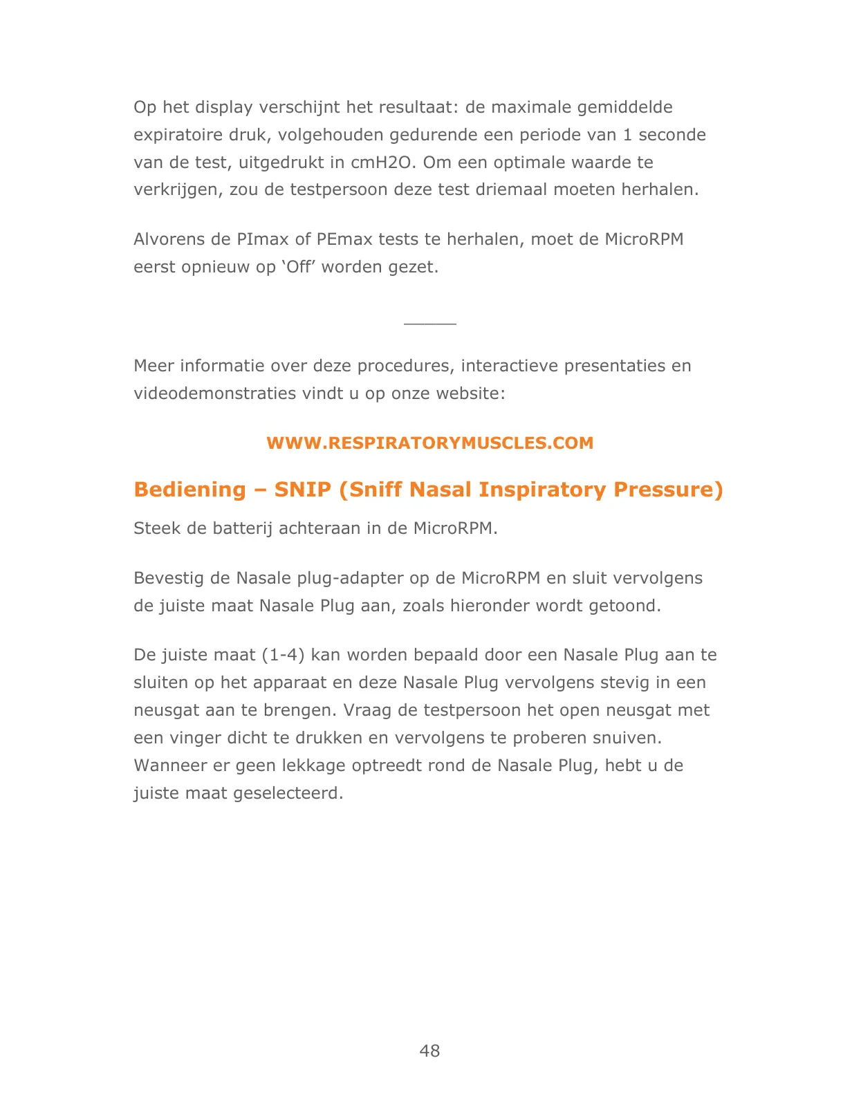 Bediening – SNIP (Sniff Nasal Inspiratory Pressure)