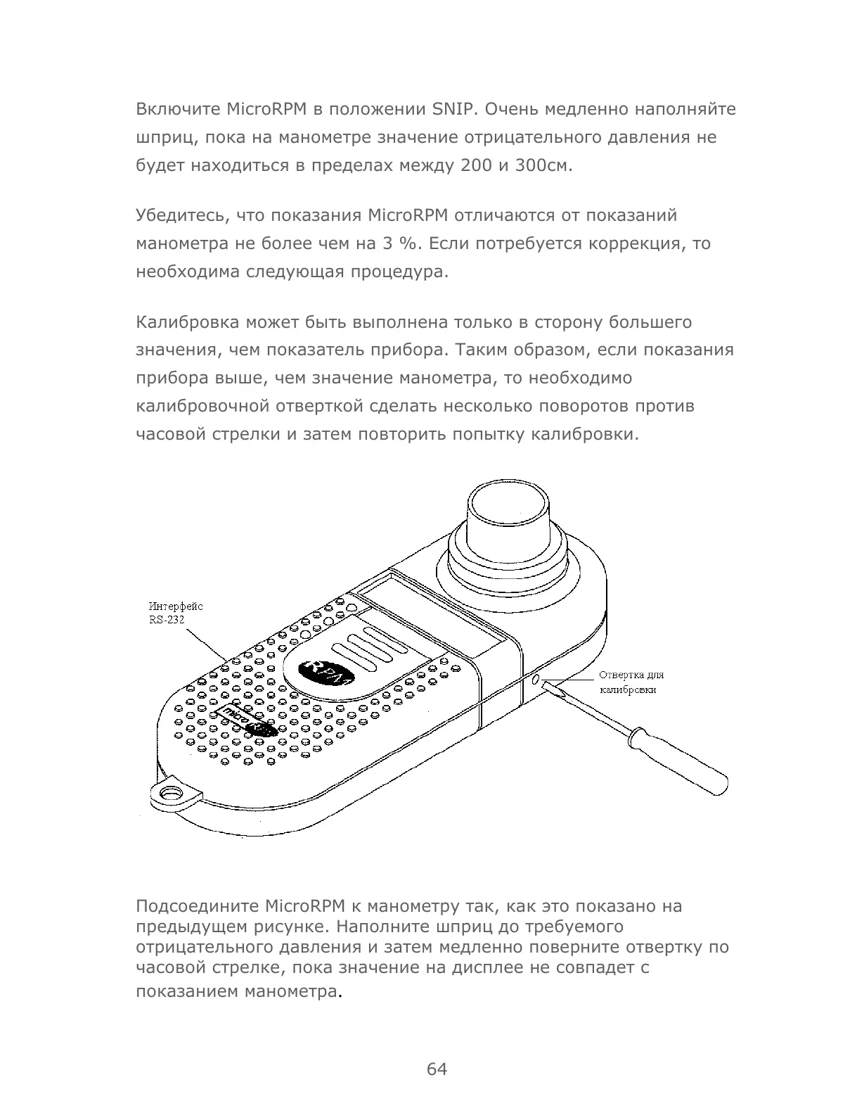Подсоедините MicroRPM к манометру так, как это показано на