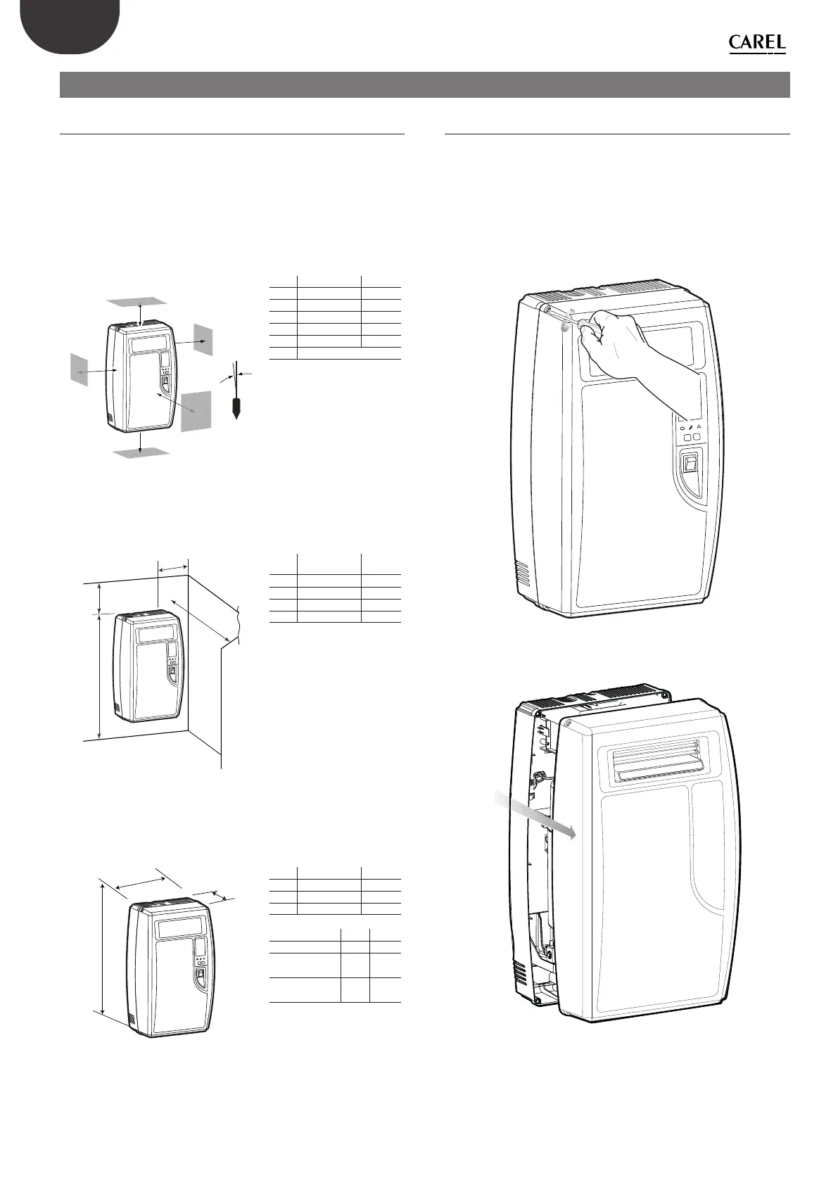 • make sure the humidier is vertical, leaving the minimum clearances
