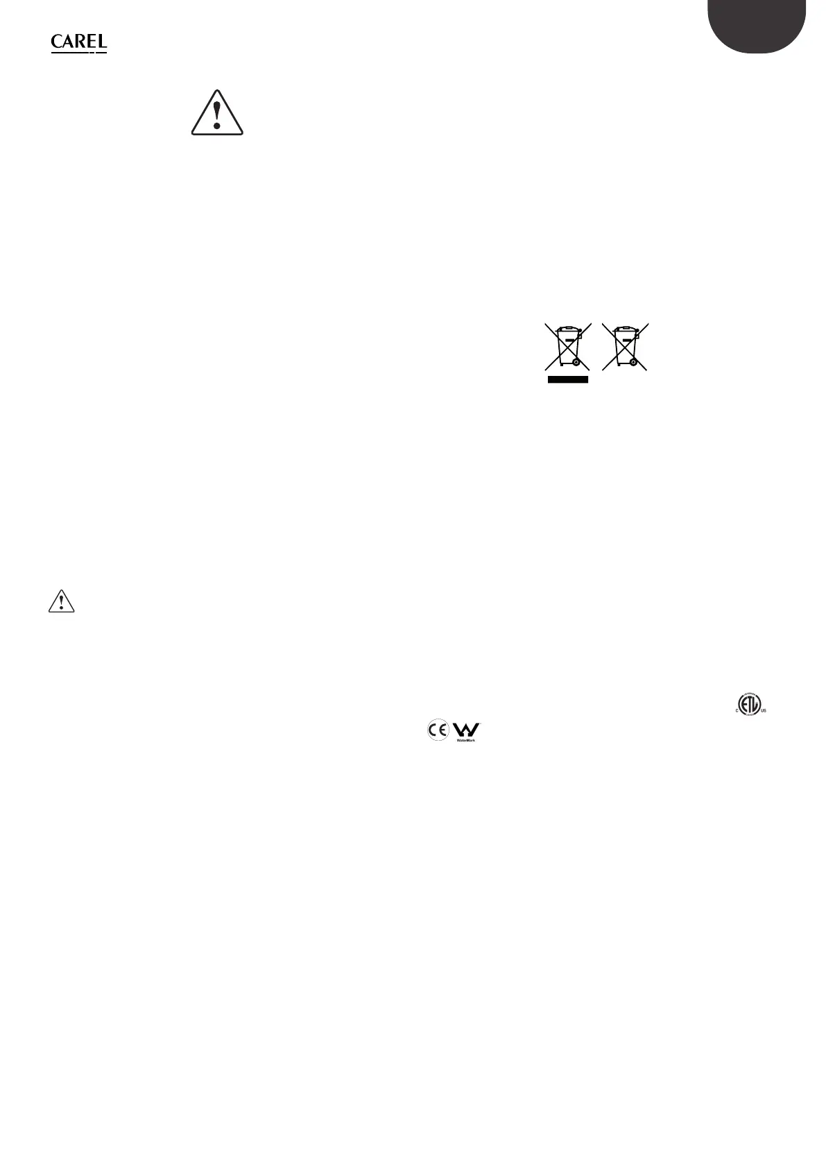 in contact with water (or condensate). CAREL Industries declines all liability