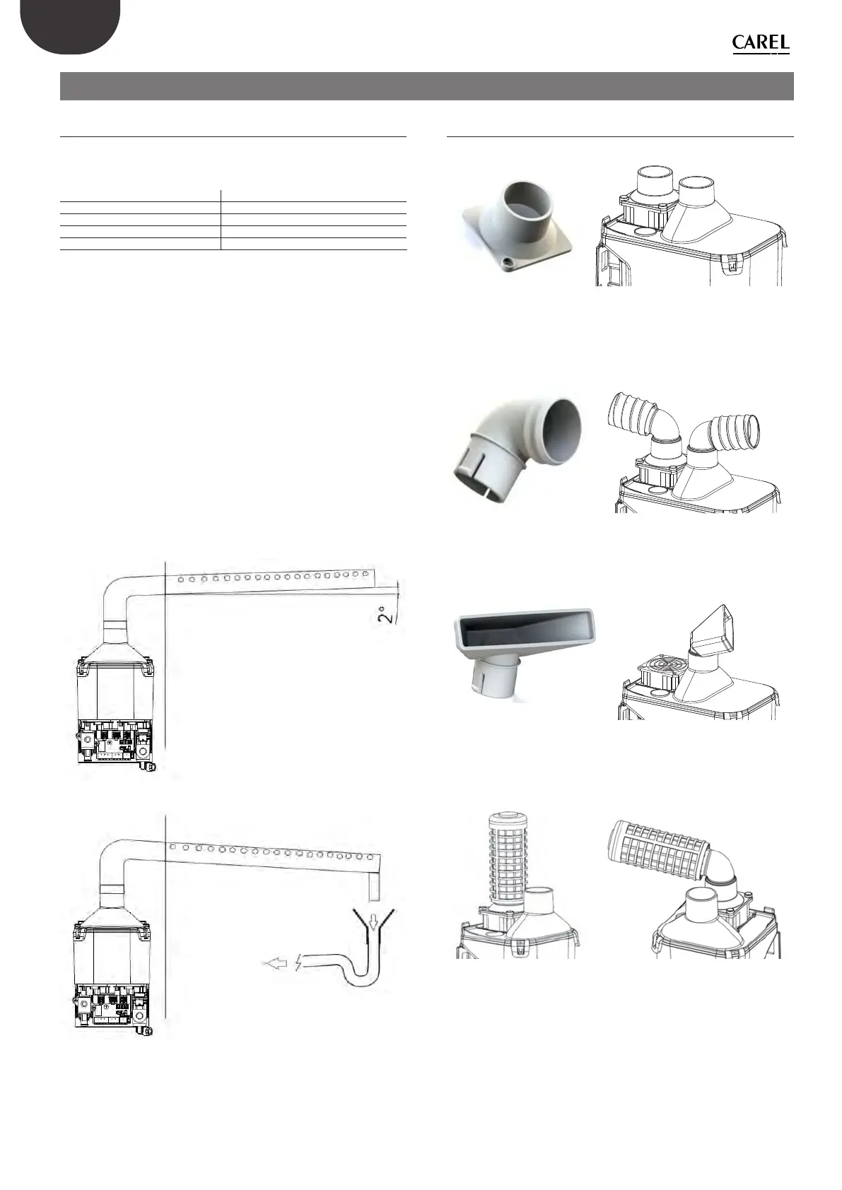 gradient of 2° so that any condensate ows back into the humidier or
