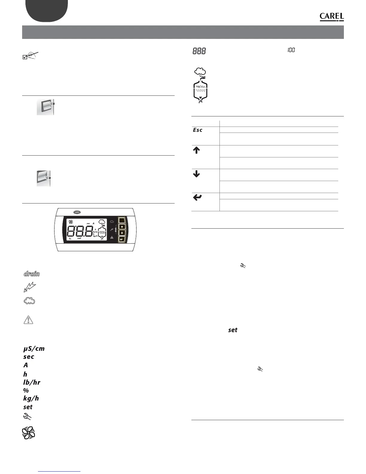 UP from the main screen: display the humidifi cation values