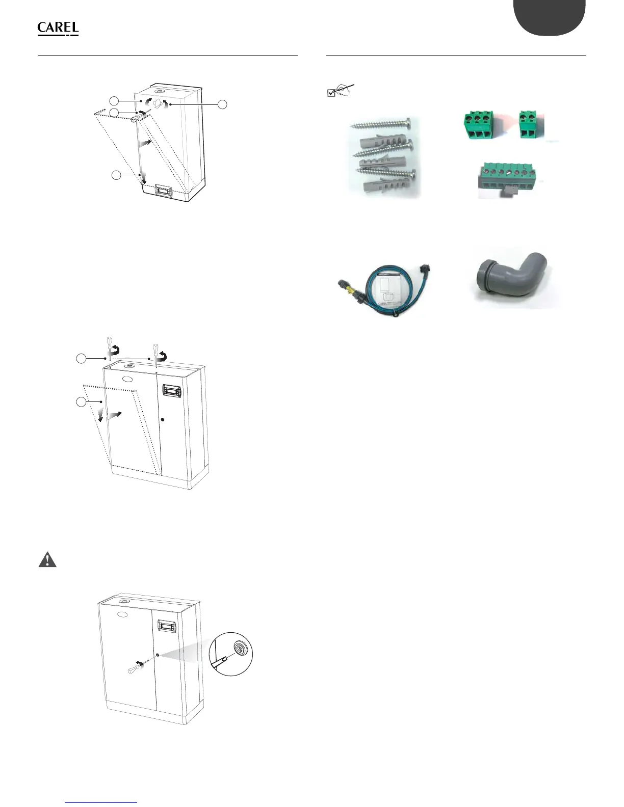 1. turn the red oval-shaped plate with the CAREL logo, revealing the