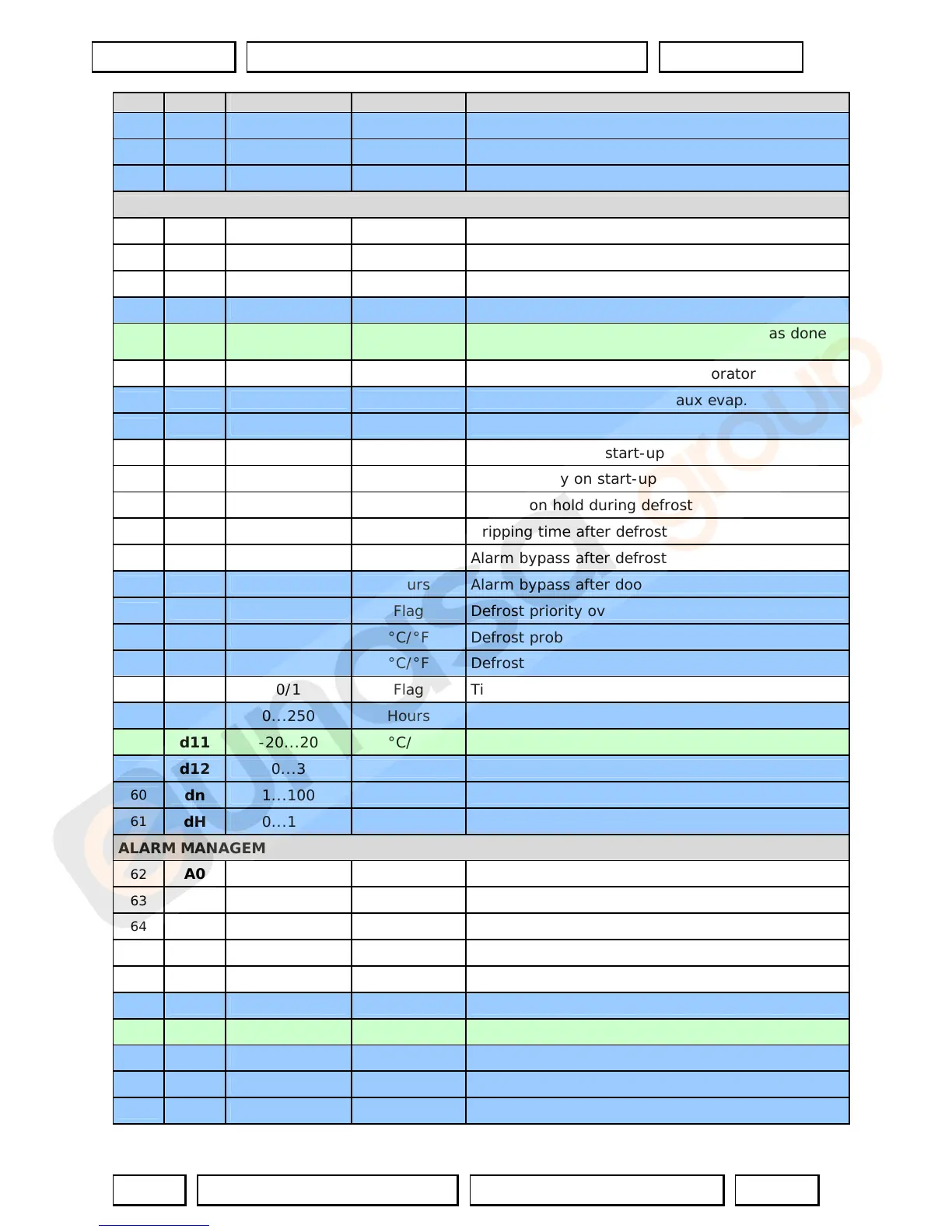 dP2 1…250 Minutes Maximum defrost duration, aux evap.