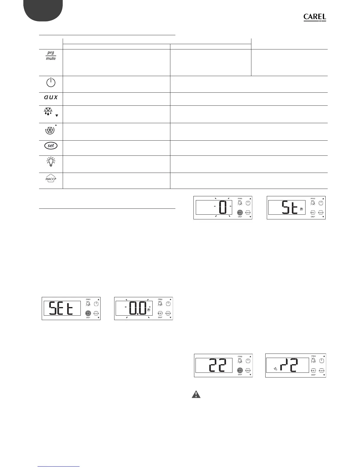 UP/CC+SET: if pressed together for more than 3 seconds, displays the defrost temperature