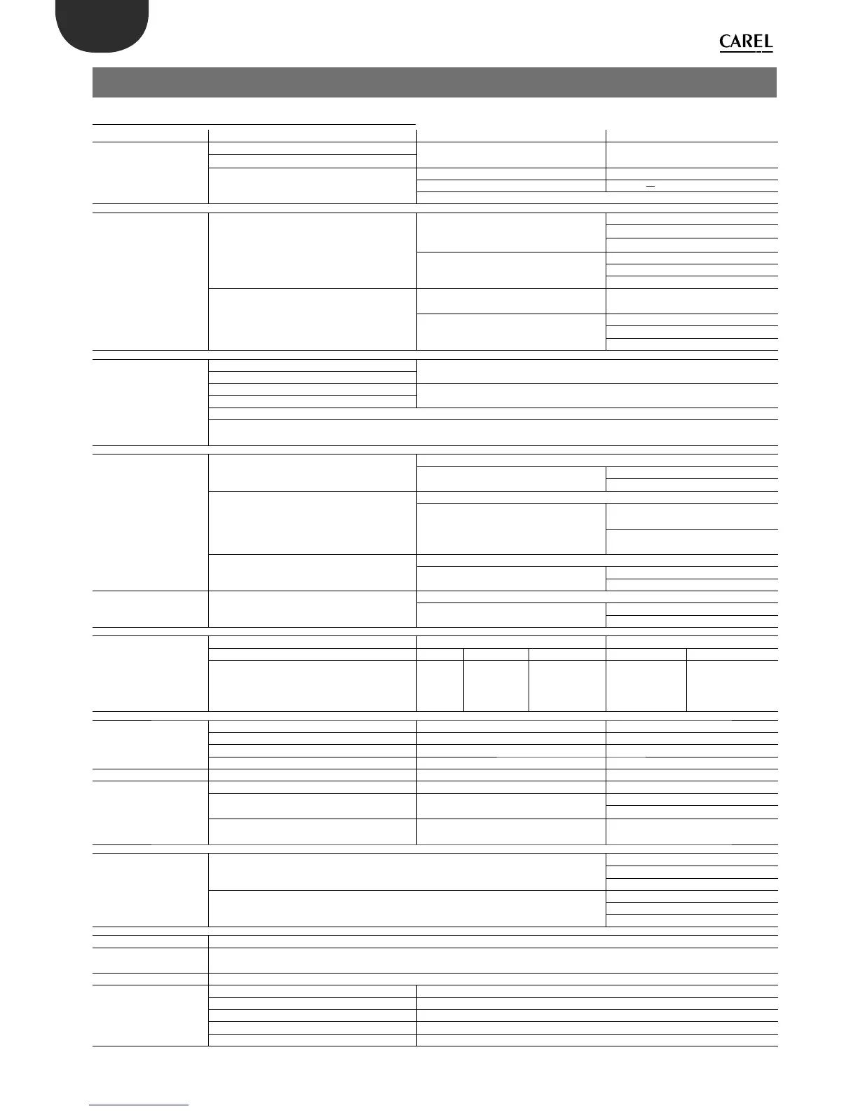 Carel IROPZ48500 - Technical Specifications and Product Codes; Technical Specifications