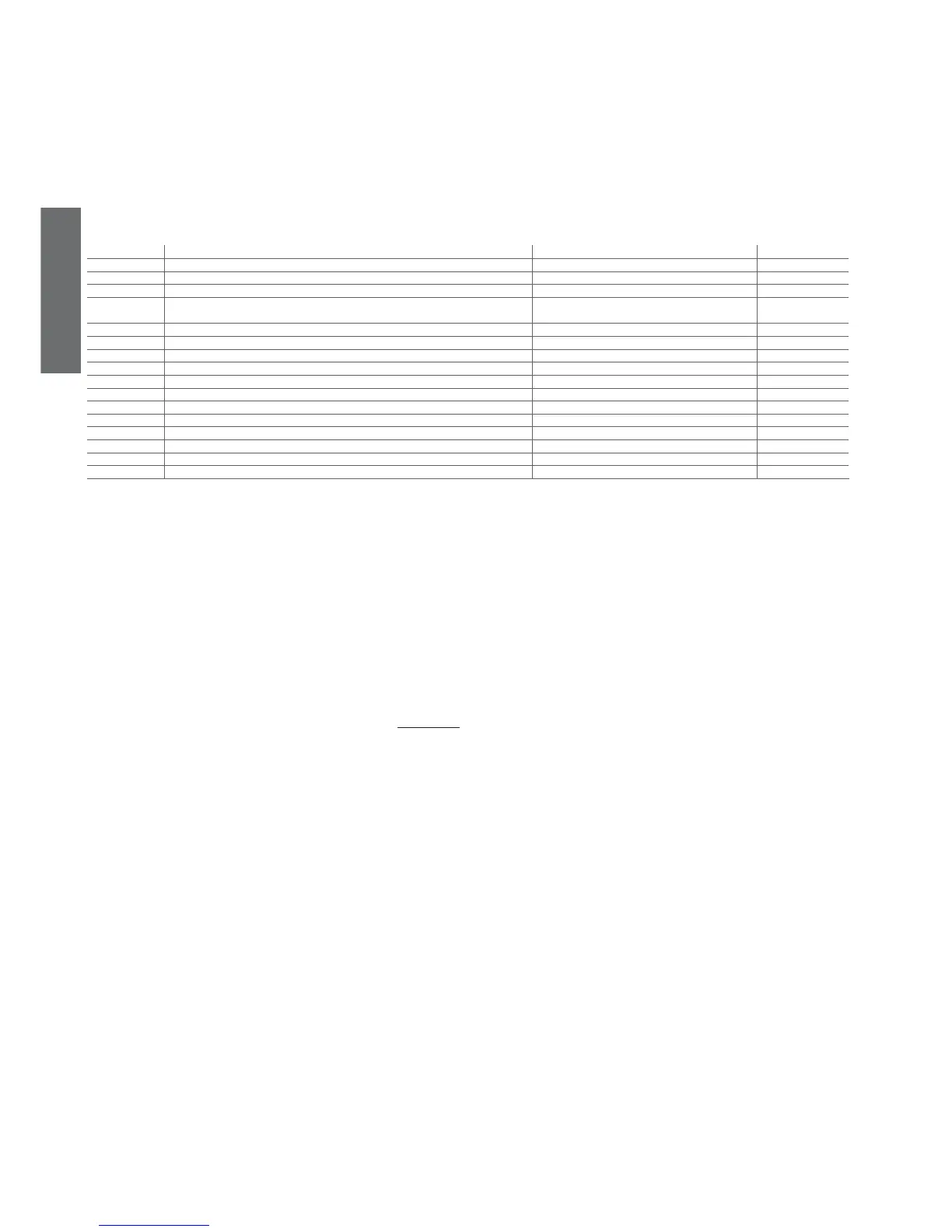The table below summarises the functions of the digital input corresponding to the value assigned to the